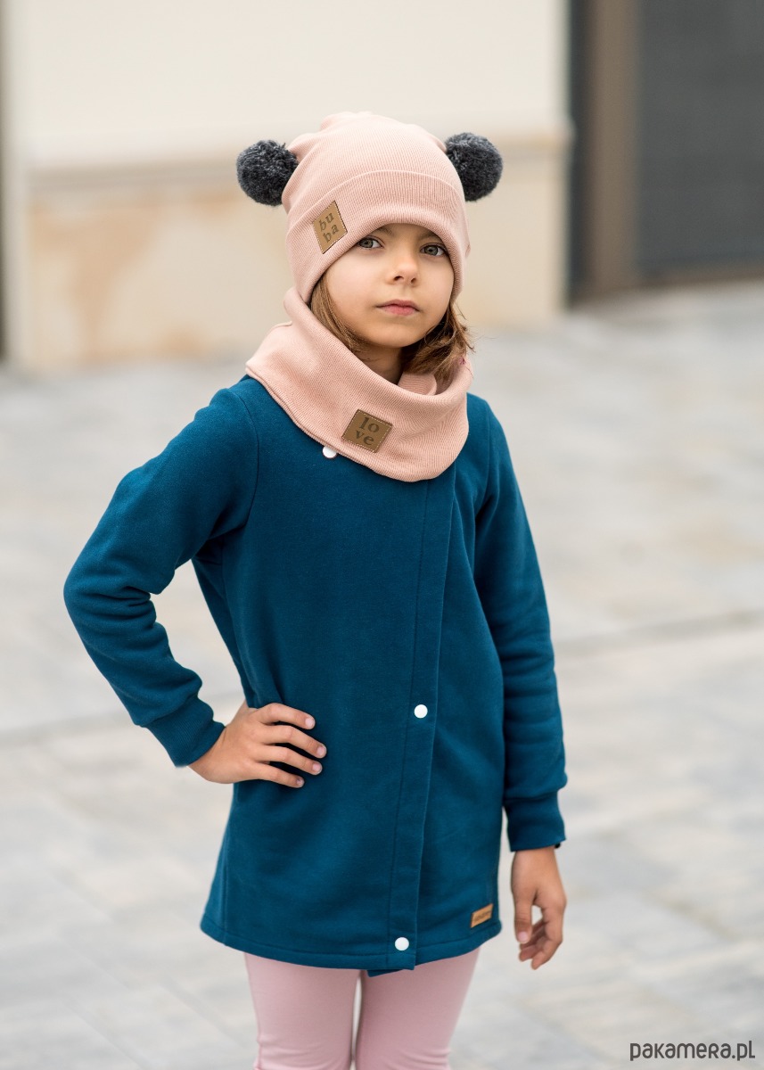 Zimowa czapka z kominem dziecięca uszyta z podwójnej warstwy materiału w kolorze beżowym . Uszyta w 96% z dzianiny bawełnianej z 4% dodatkiem elastanu. Bawełna ma doskonałe właściwości cieplne, a więc zapewnia doskonałą cyrkulację powietrza, przy czym jest wyjątkowo miękka i miła w dotyku, ponadto dodatek elastanu zapewnia idealne dopasowanie czapki do głowy dziecka.Podwójna warstwa dzianiny sprawia, że zestaw idealnie sprawdza się na zimowa porę.Dodatkowo zastosowane przez nas dzianiny cechują się wysoką wytrzymałością przy zachowaniu naturalnych właściwości bawełny.
