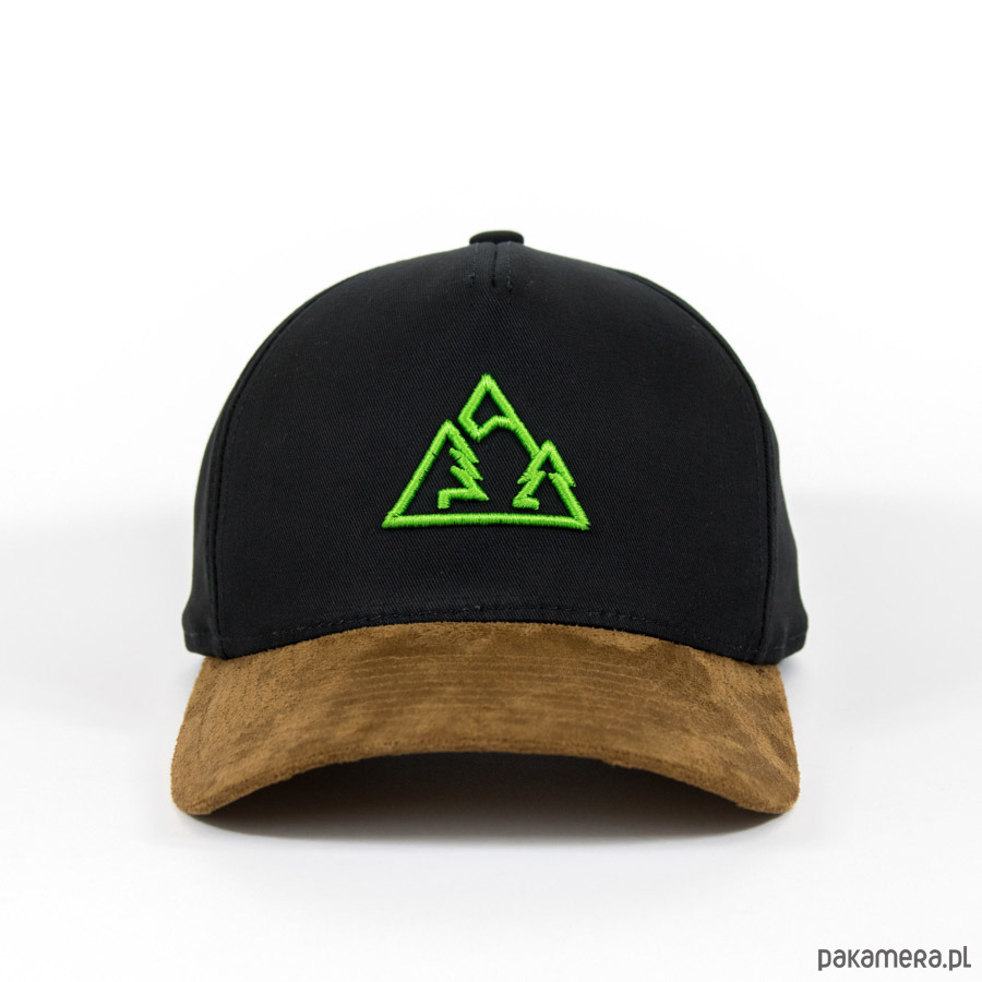 Panelowa czapka w czarno-brązowym kolorze (daszek jest brązowy) z eleganckim haftem na lewej piersi w kształcie trójkąta symbolizującego szczyt górski. We wnętrzu wzoru znajduje się zarys dwóch choinek, nad którymi wznosi się wierzchołek (wierch). Minimalistyczne i nie rzucające się w oczy ozdoby przypadną do gustu wszystkim osobom ceniącym prostotę i funkcjonalność. Symbole te podkreślą również Twoje zamiłowanie do outdooru i górskich trekkingów. Jeśli kochasz góry, to zdecydowanie jest to model dla Ciebie.