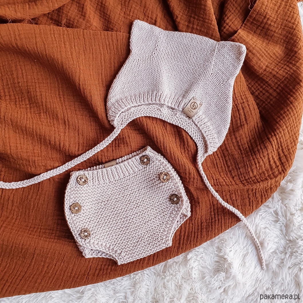 Urocza czapka typu bonnetka, wykonana ręcznie z naturalnej przędzy z dbałością o każdy detal. Idealnie dopasowuje się do głowy dziecka. Taka bonnetka będzie uroczym dopełnieniem stylizacji ;)