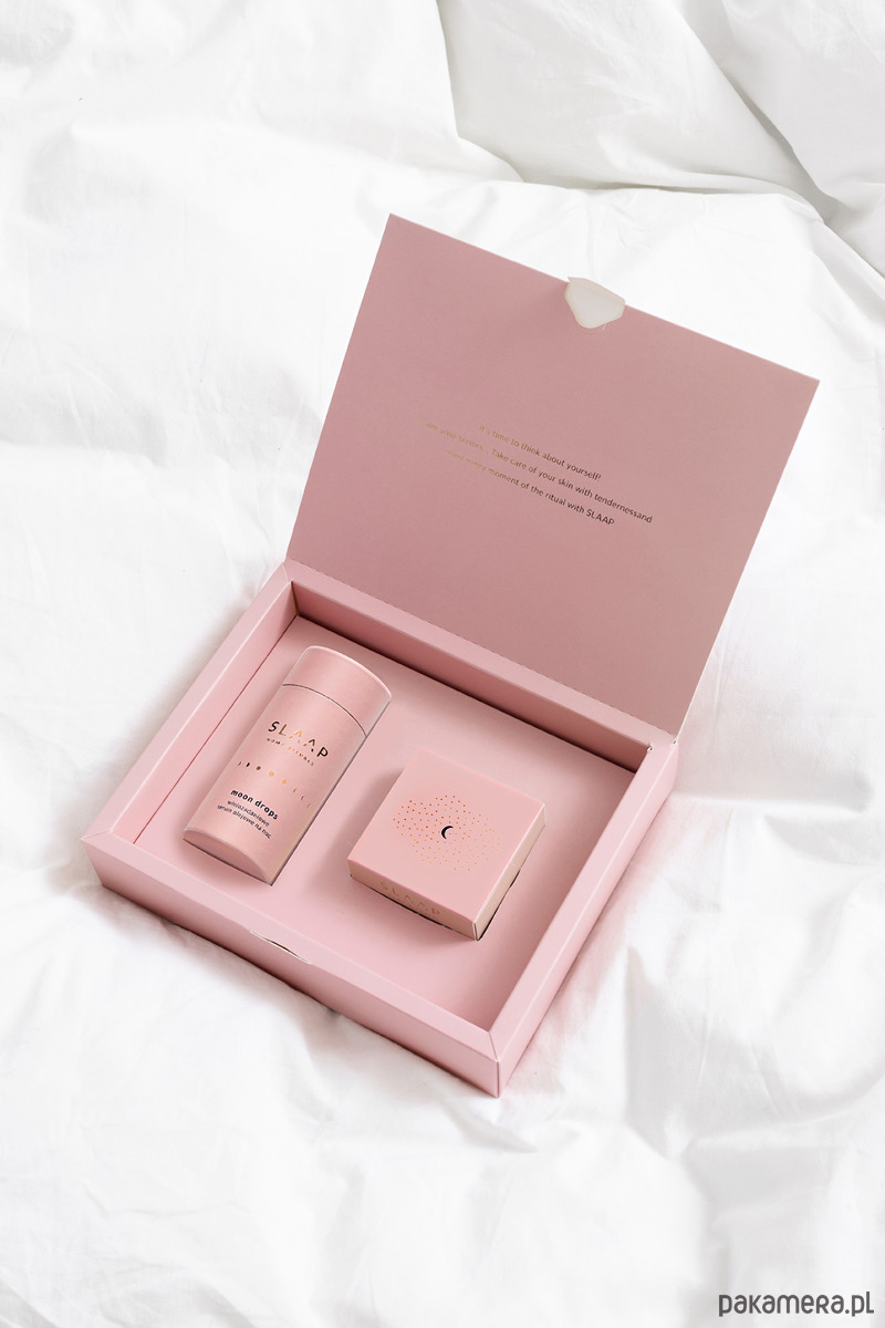 Całość zapakowaliśmy w eleganckie ozdobne pudełko z otwieraną klapą. Szyku dodaje różowa kokarda z rypsowej wstążki.