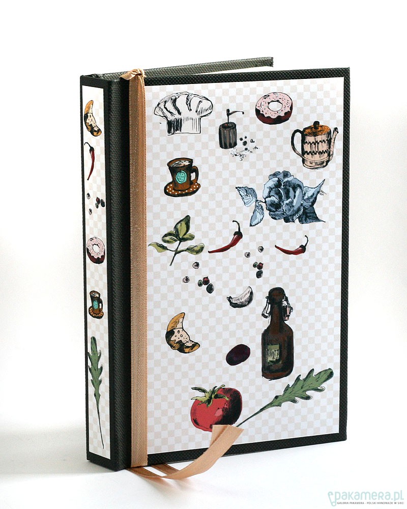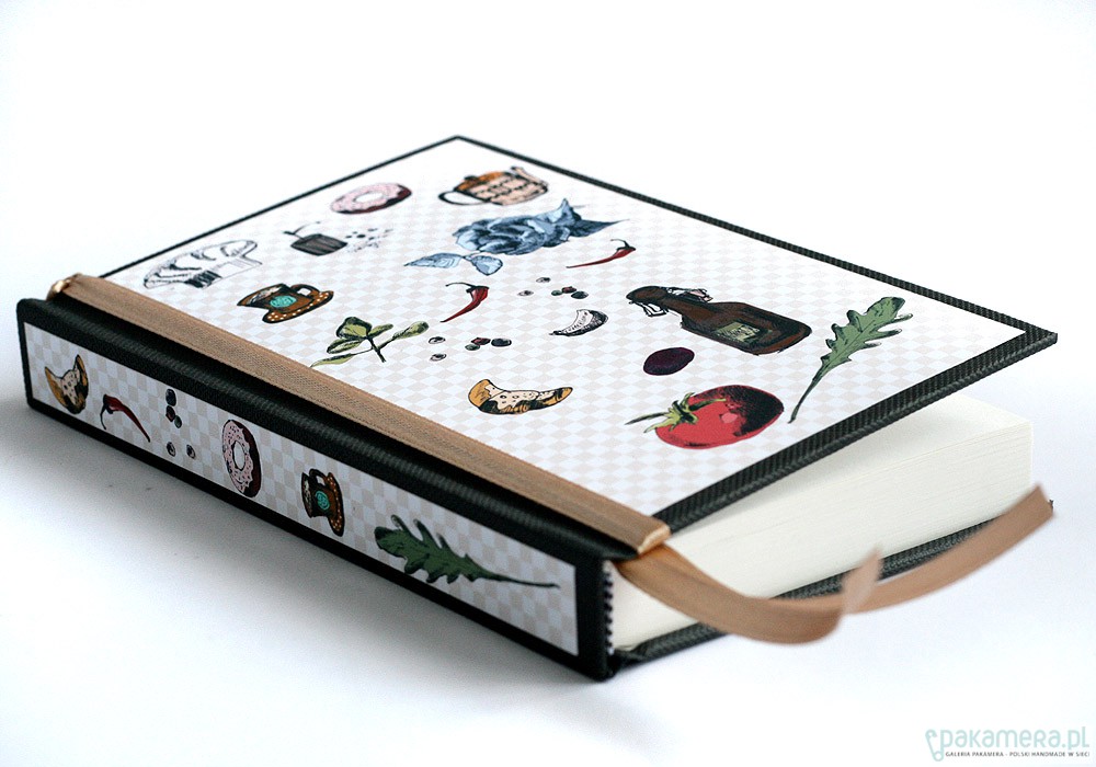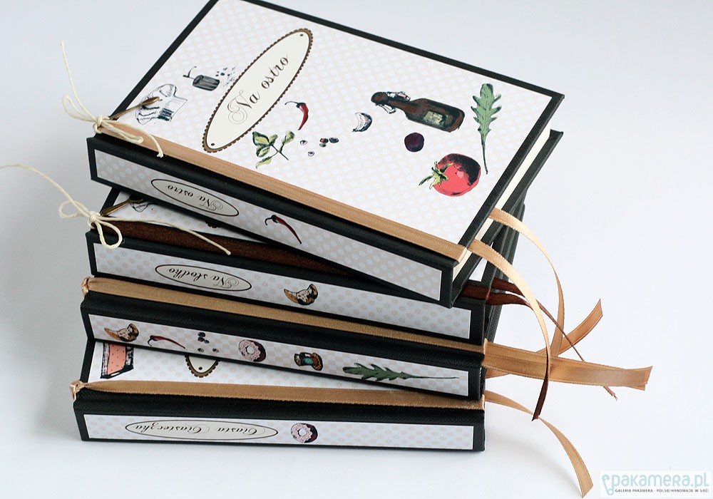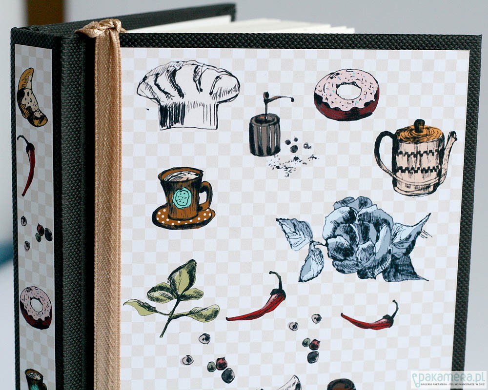 Notes na przepisy - oryginalny prezent. Notes kieszonkowy ozdobiony kokardką. Słodki notes z autorskimi rysunkami. Notes jest szyty w twardej oprawie zawiera 110 kremowych kartek , format 10,5 na 15,5 cm - grzbiet 2 cm.