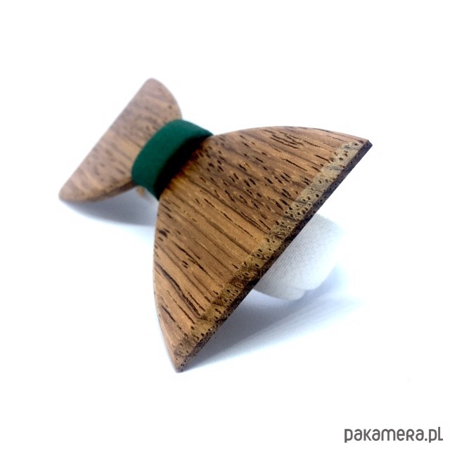 Muszka z drewna o standardowej grubości gwarantująca komfort noszenia z przeszyciem w kolorze butelkowej zieleni. Jednak możesz zamówić ta muchę i zmienić kolor przeszycia na dowolny ;)
