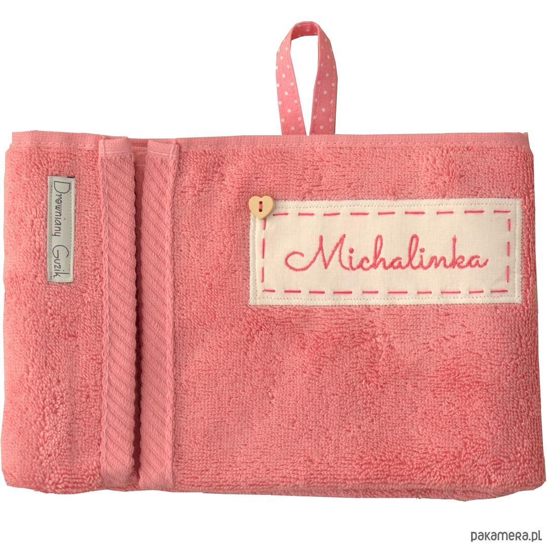 Różowy, miękki i gruby ręcznik, który bardzo dobrze chłonie wodę. Ręczniczek posiada ozdobny, różowy wieszczek.