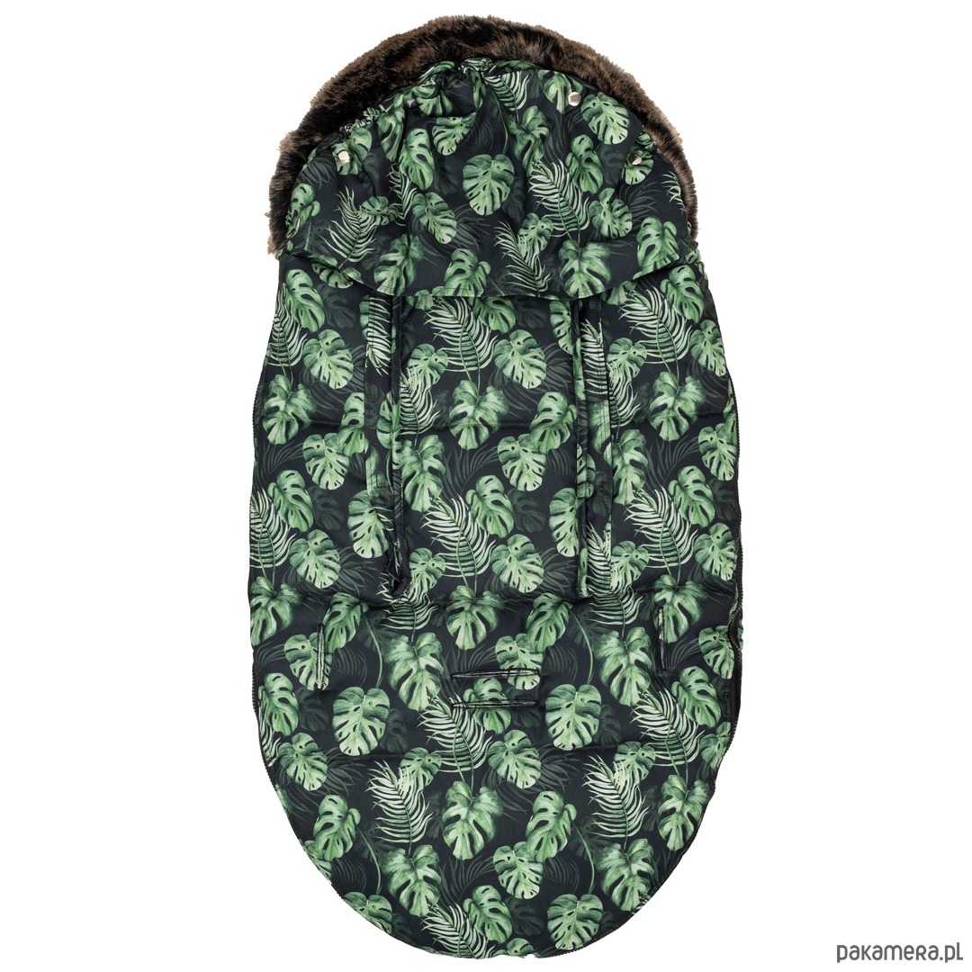 Śpiworek ma otwory na pasy uniwersalne, dzięki którym pasuje do każdego wózka.