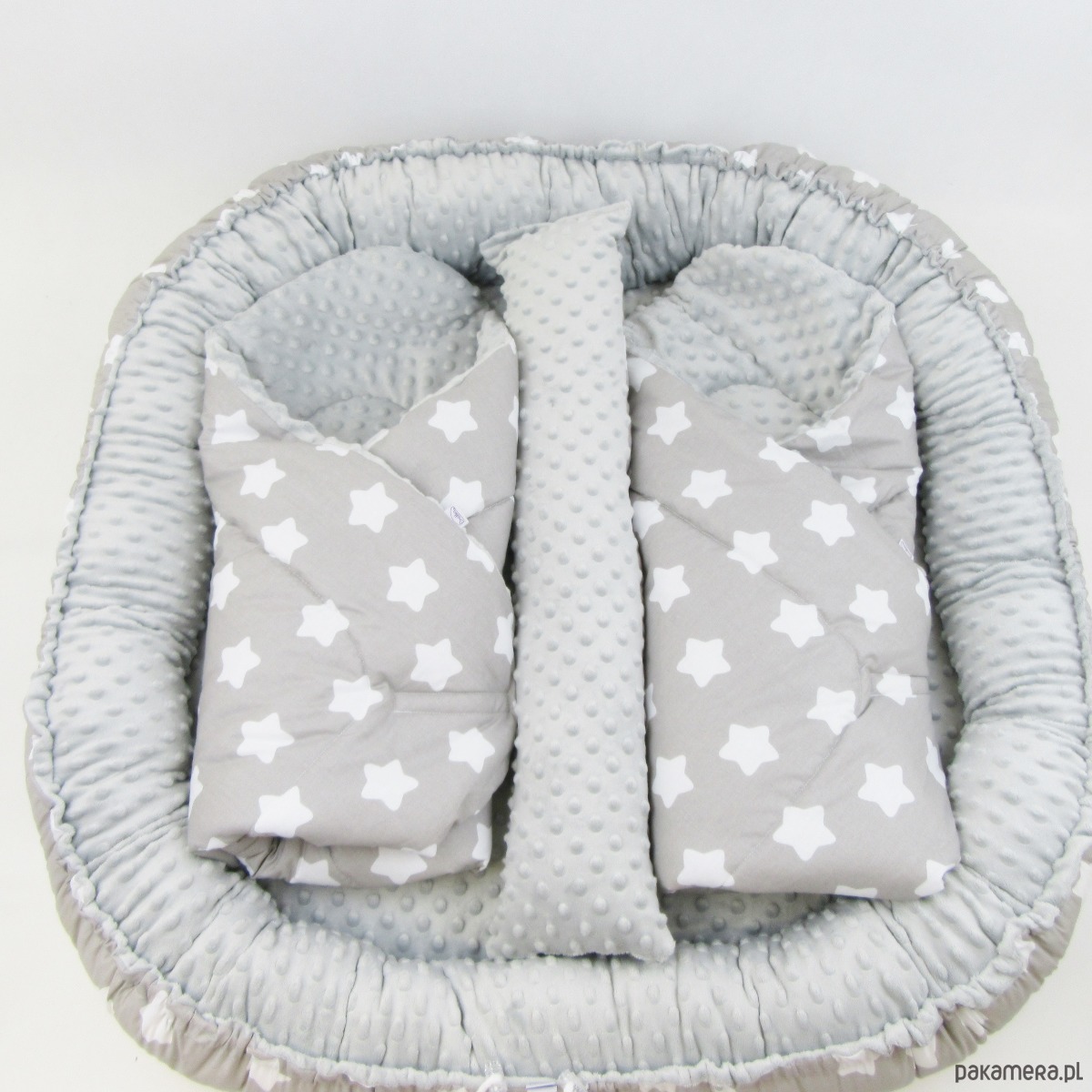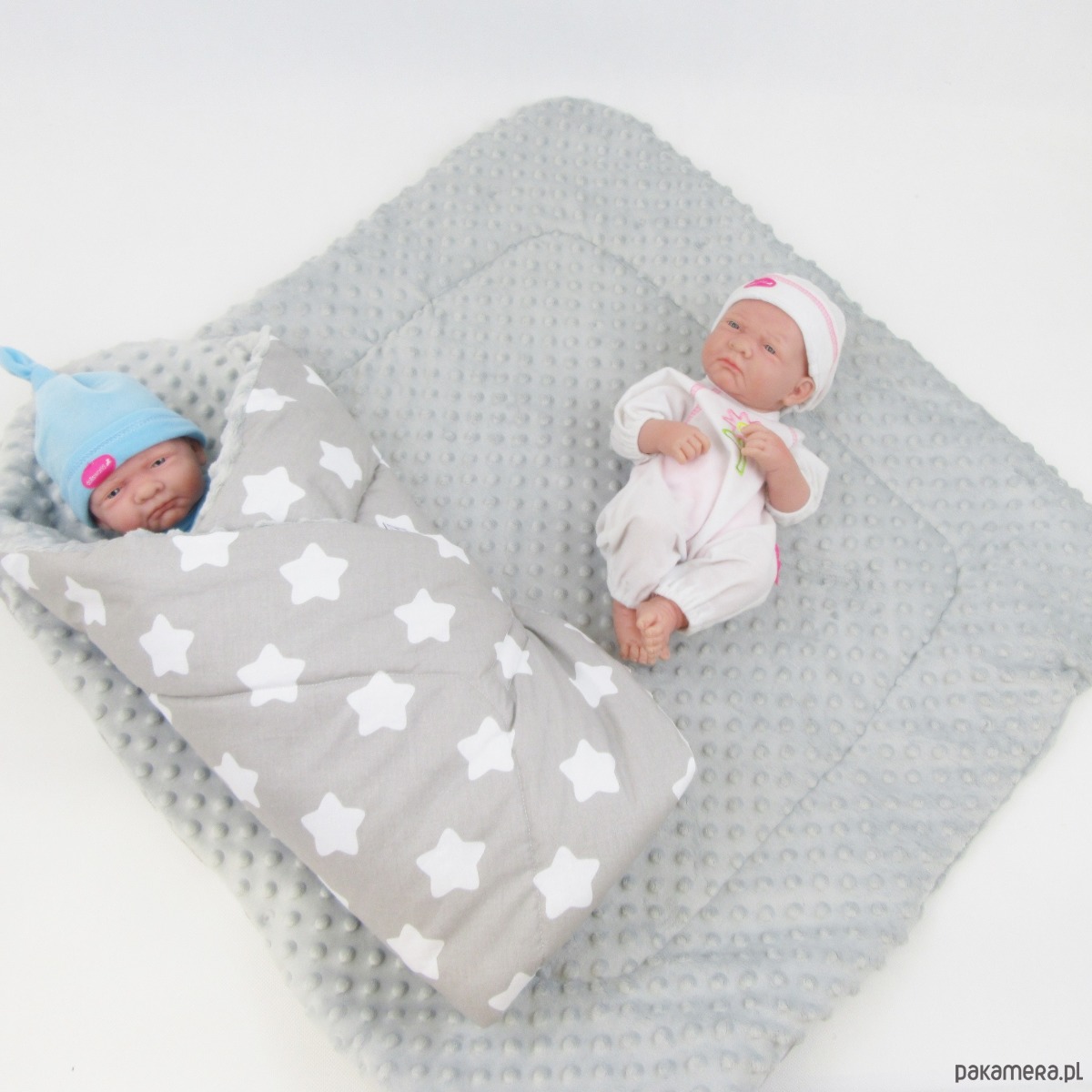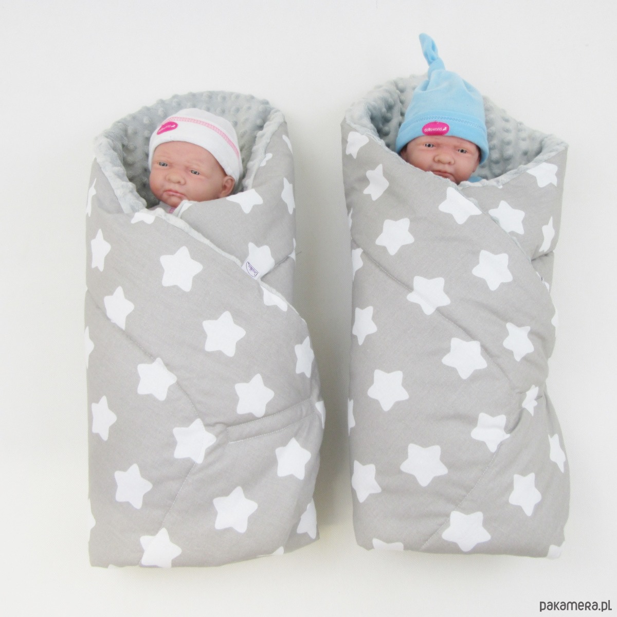 Zestaw dla bliźniąt. Dwa piękne rożki niemowlęce i kokon dla bliźniąt. Rożki otulą twoje maleństwa od dnia narodzin przez kilka pierwszych miesięcy życia. Zapewnią dzieciom odpowiedni poziom ciepła oraz poczucie bezpieczeństwa. W późniejszym okresie będą cudownie miękkim kocykiem lub matą do zabawy. Zapinane na rzep - spora możliwość regulacji obwodu.