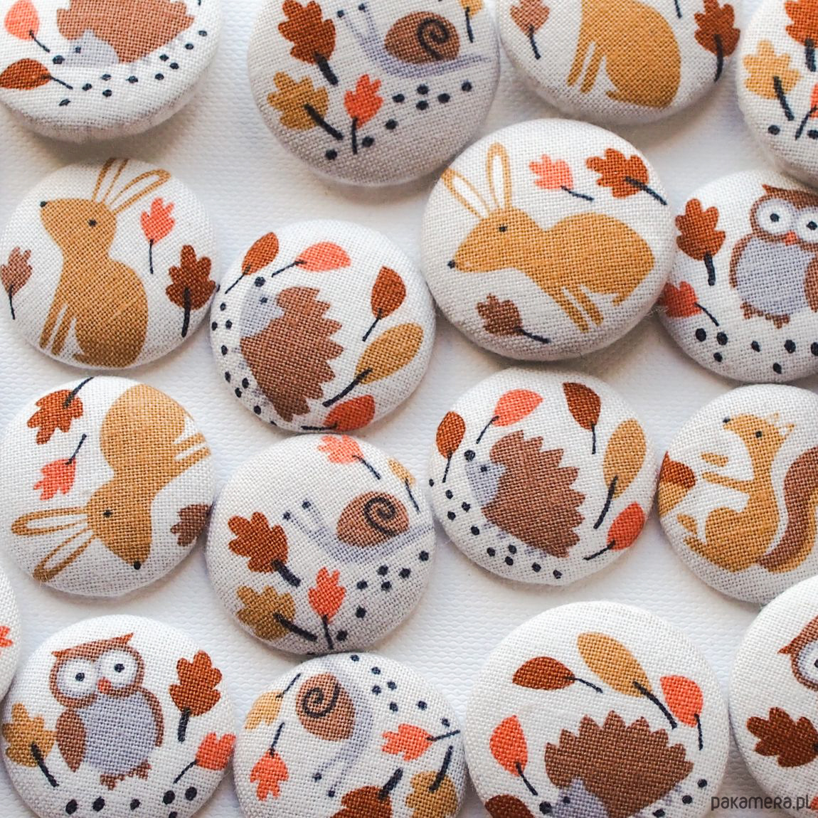 Wykonane z ręcznie robionych guzików z tkaniny bawełnianej i gumek