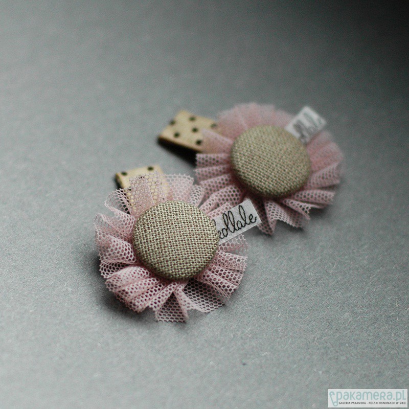 malutkie spineczki z kwiatuszkami w bajkowych kolorach na klipsach pyczkach o dł. 3cm doskonałe na prezent projekt autorski