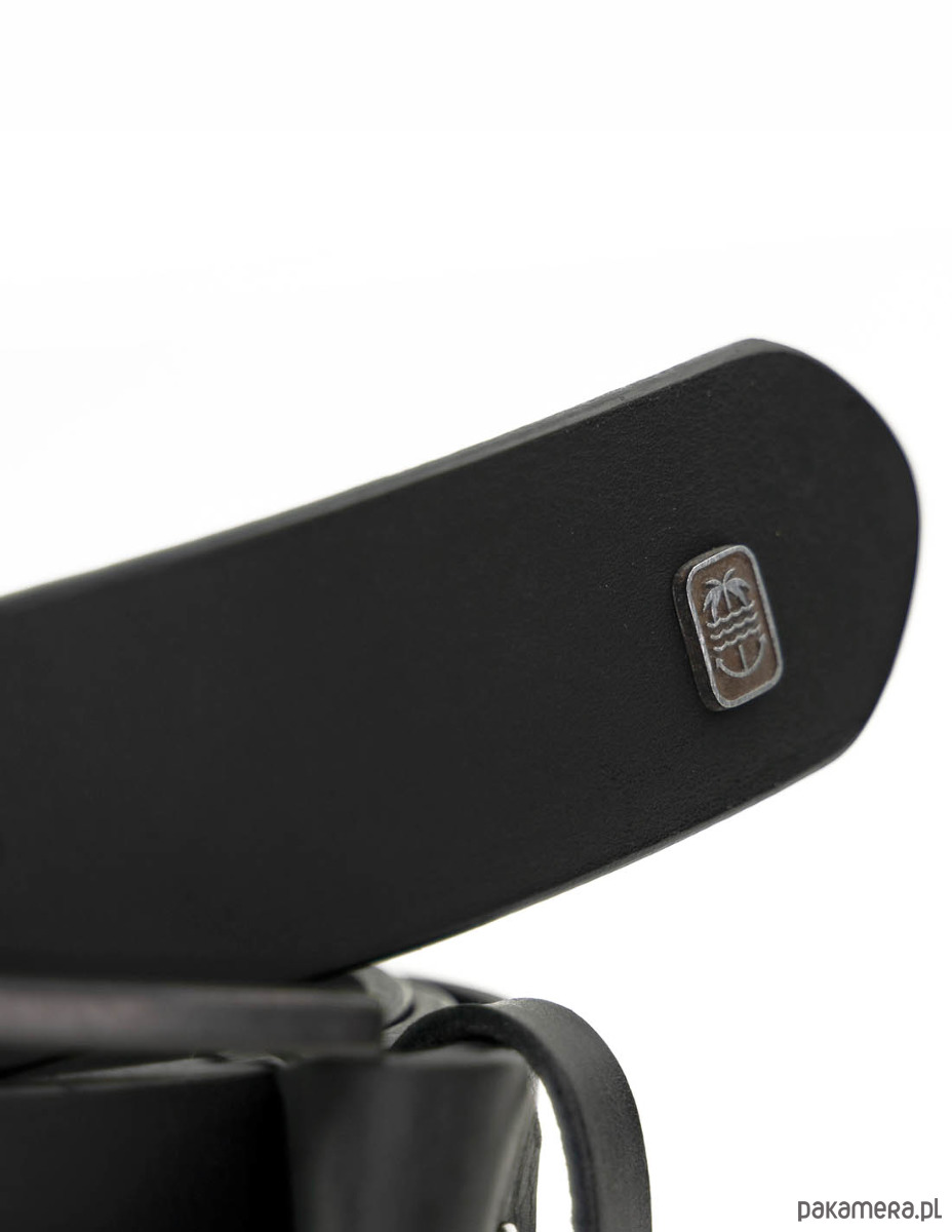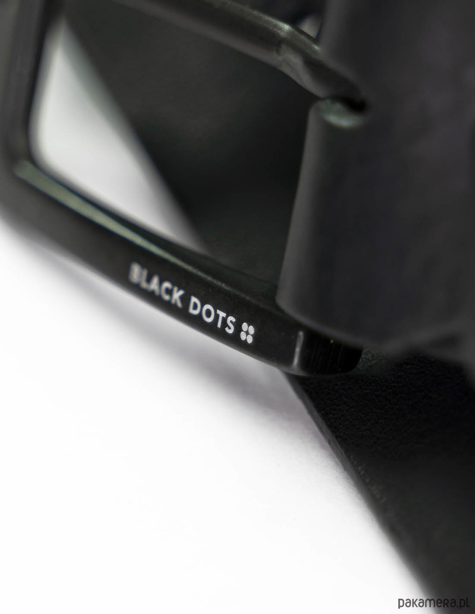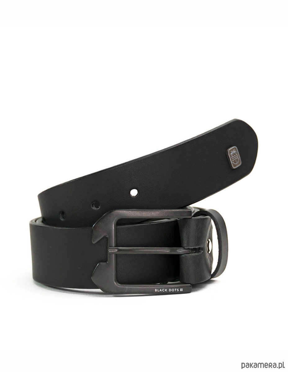 Ręcznie wykonywany w Polsce, wycinany z jednego płata skóry. Klamra manualnie przecierana, dzięki czemu każda sztuka ma indywidualną strukturę rys. Na końcu paska metalowy pin z logo Black Dots.