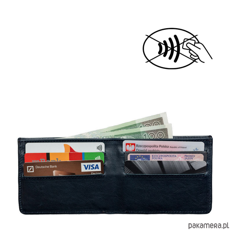 Portfel na karty i banknoty, dla osób preferujących płaskie i dyskretne portfele. Wykonane ze skóry garbowania roślinnego. Niepowtarzalny kolor uzyskano dzięki ręcznemu malowaniu. Każdy portfel będzie miał nieco inny odcień, ale za to, każdy egzemplarz jest niepowtarzalny i jedyny w swoim rodzaju.