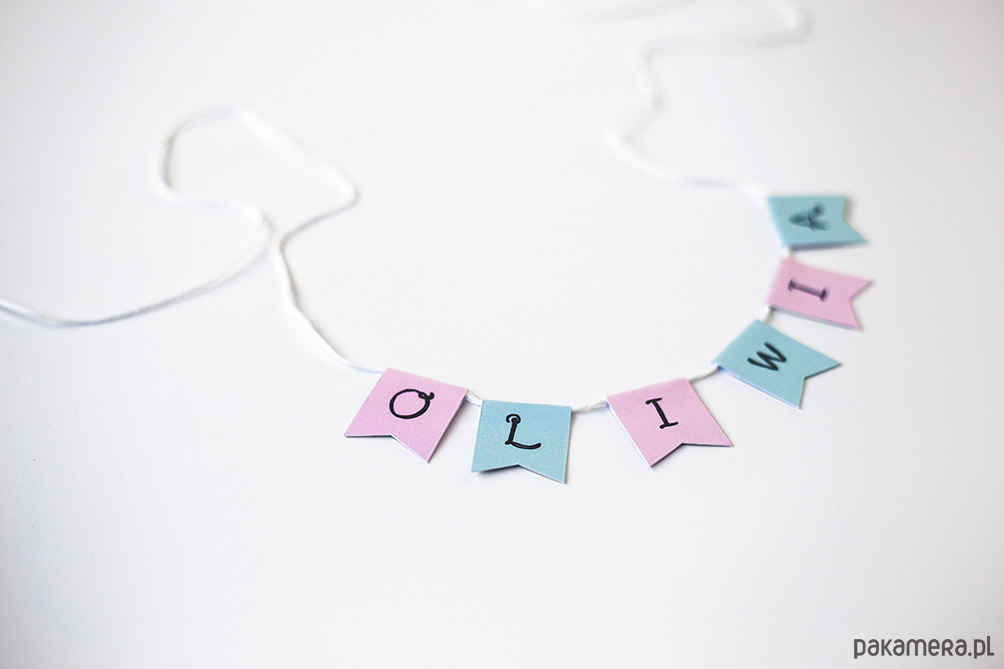 - ilość chorągiewek na girlandzie zależy od ilości literek napisu (na przykład, napis "Roczek Zosi"; zawiera 10 literek, czyli girlanda będzie miała 10 chorągiewek);