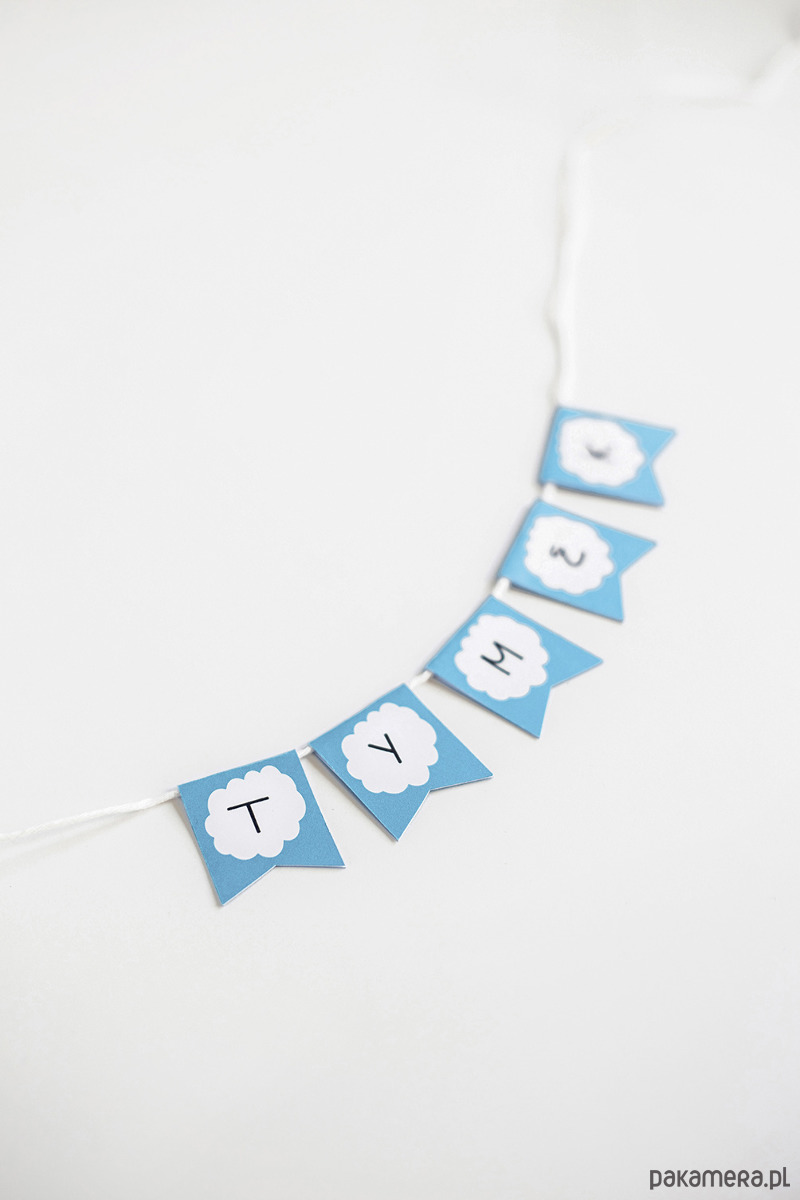 - ilość chorągiewek na girlandzie zależy od ilości literek napisu (na przykład, napis "Roczek Adasia"; zawiera 12 literek, czyli girlanda będzie miała 12 chorągiewek);
