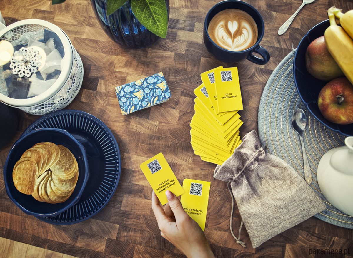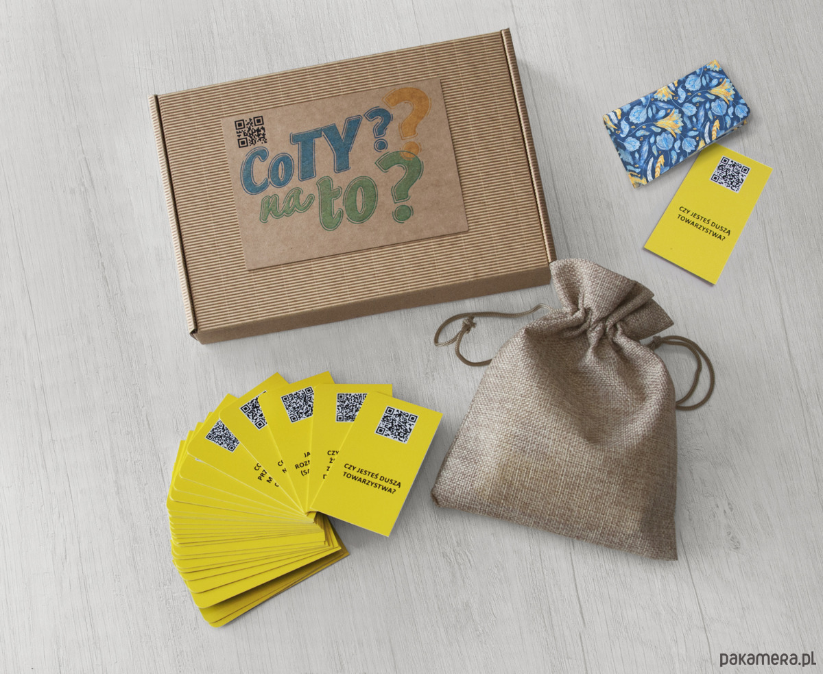 Gra pozwalająca odkryć siebie i pozostałych graczy, poprzez pytania. Tu sami decydujemy na ile chcemy się otworzyć i ujawnić prawdę o sobie. Gra dedykowana dla osób powyżej 12 roku życia. Co Ty na to? Nie ma limitu osób, im większe grono graczy, tym weselej. Dla osób niewidomych i słabowidzących, każda karta posiada QR z pytaniem, co pozwala na jej odczytanie po zainstalowaniu odpowiedniego oprogramowania.