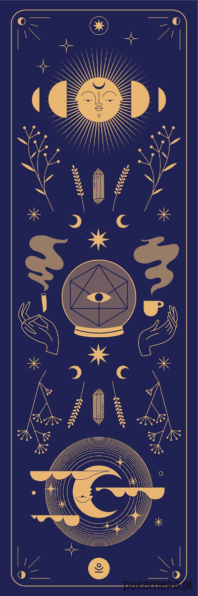 Mata do jogi Magic pełna jest odniesień magicznych; mamy tu palo-santo, zioła, kwiaty i magiczne kryształy, a także takie atrybuty nowoczesnej czarodziejki jak magiczna kula, którą ułożyliśmy w centrum, wypełniona geometrycznym wzorem, przypominającym ryciny astrologiczne z poprzednich wieków. W centrum Trzecie Oko. Wzór jest inspirowany kartami Tarota - klimatyczny, ale jednocześnie niezobowiązujący i elegancki. Pięknie odnajdzie się w każdej przestrzeni jogowej.