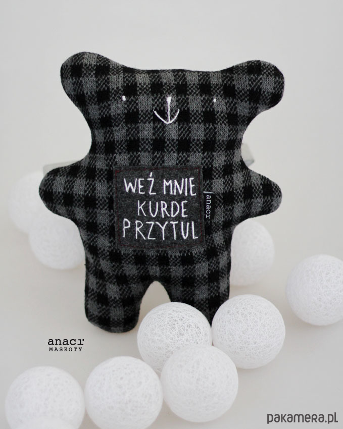 Miś Zdziś nie ma problemu z bezpośrednią komunikacją swoich potrzeb, ma 25 cm. wysokości, uszyty z dzianiny swetrowej, zaopatrzony został w filcową plakietkę z haftem.