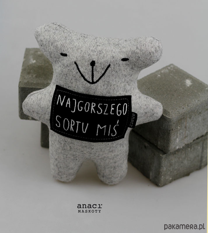 Miś mierzy sobie 25 cm., uszyty z dzianiny swetrowej, wypchany lewactwem.