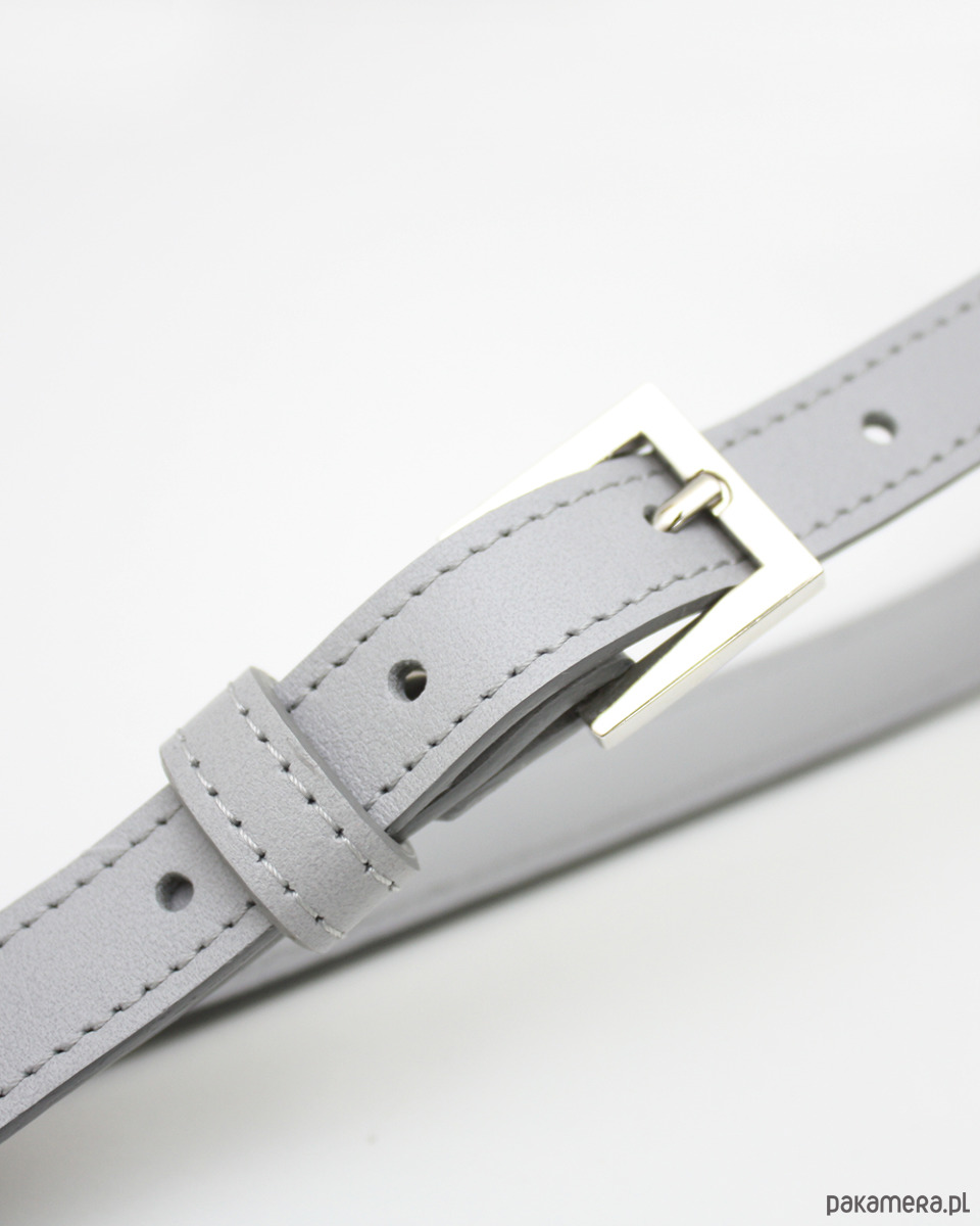 Pasek jest bardzo efektowny dzięki dokładnemu wykonaniu i dodatkom takim jak ozdobne karabińczyki w kolorze srebrnym, elegancka i lekka klamerka, a także ręcznie malowane krawędzie skóry.