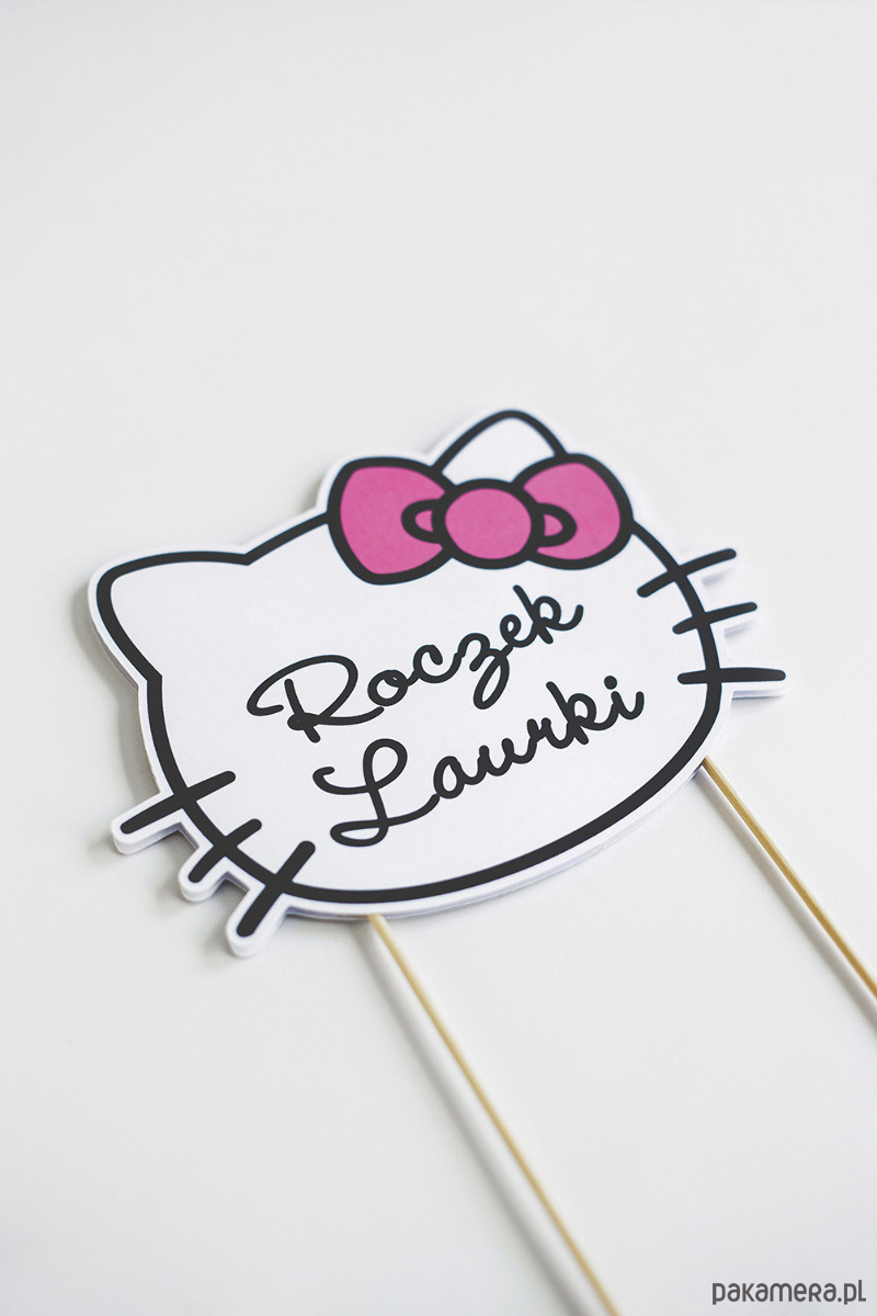 - produkt dwustronny: przednia część toppera - to grafika główki kotka Hello Kitty z napisem, tylna część - lustrzane odbicie grafiki BEZ NAPISU.