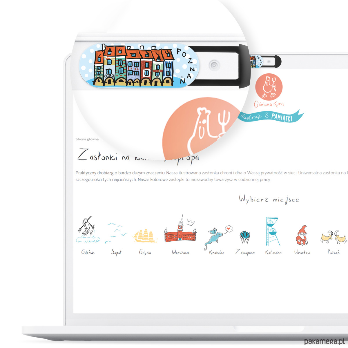 Nasza zasłonka to jeden z niewielu modeli na rynku, który umożliwia całkowite zamknięcie nawet najcieńszych laptopów. Zasłonka z ilustracją Domków Budniczych z Poznania jest wyjątkowo łatwa w użytkowaniu, wystarczy przesunąć ją w lewo. Montaż jest równie prosty - wystarczy usunąć ochronę taśmy z tyłu i przykleić do urządzenia.
