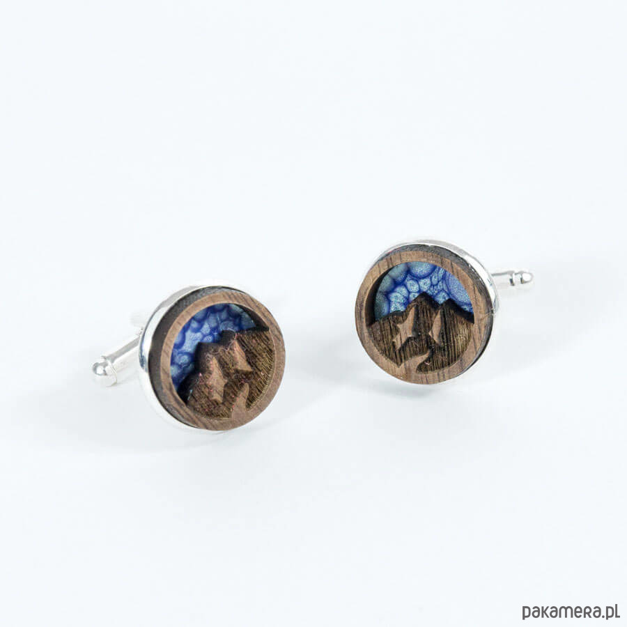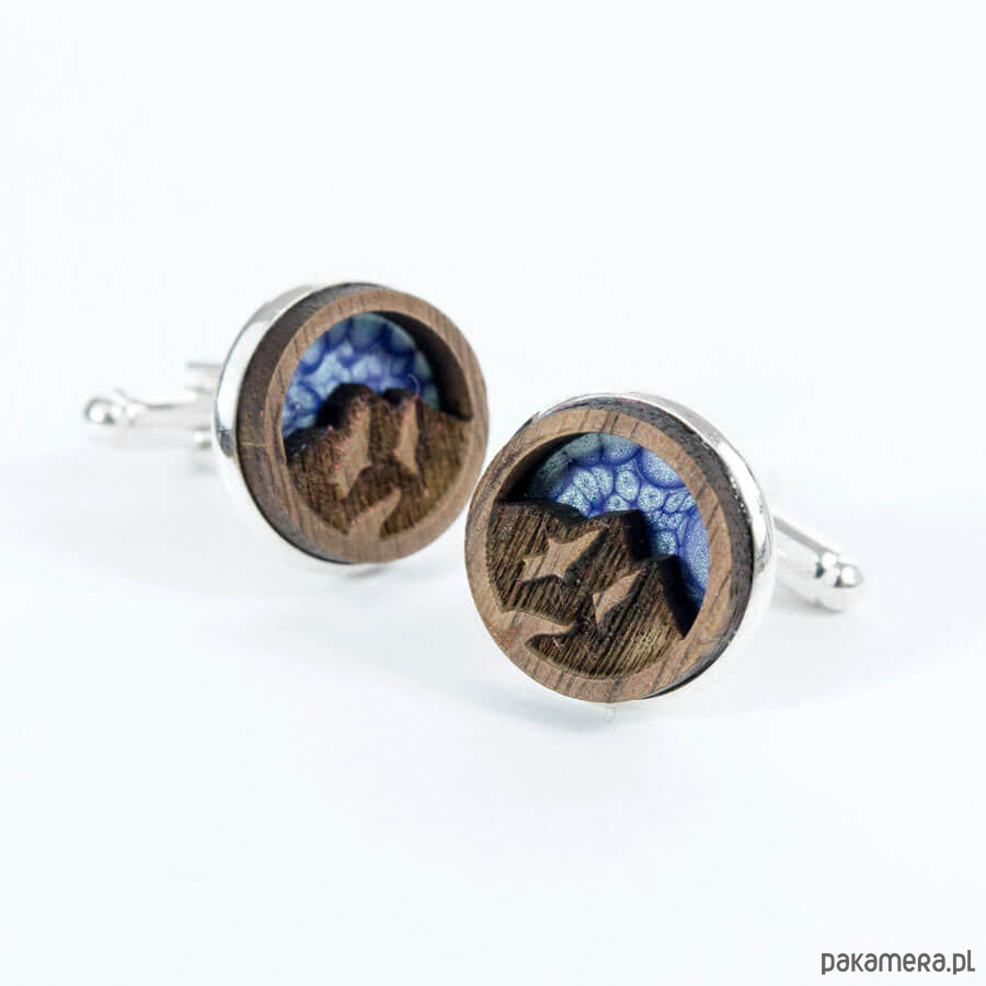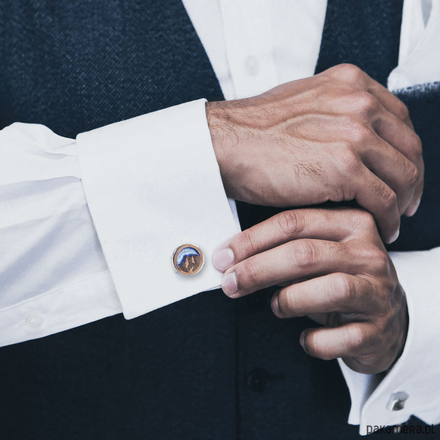 Spinki do mankietów w outdoorowym klimacie dla miłośników podróży i dzikiej przyrody. Okrągłe spinki do mankietów (średnica 18mm) wykonane z wysokiej jakości stali nierdzewnej o właściwościach antyalergicznych oraz naturalnego drewna. Połączenie polerowanego metalu ze szlachetnym drewnem sprawia, że spinki nabierają niezwykle klasycznego wyglądu. Doskonale sprawdzą się jako ciekawy dodatek do eleganckich stylizacji.
