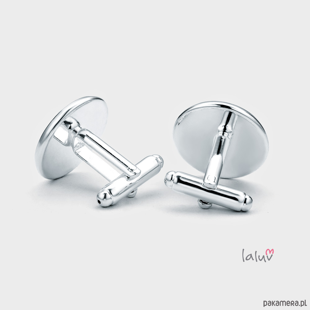 Spinki do mankietów z wysokiej jakości grafiką zamkniętą pod wypukłym szkiełkiem i oprawione w bazę w kolorze srebrnym.