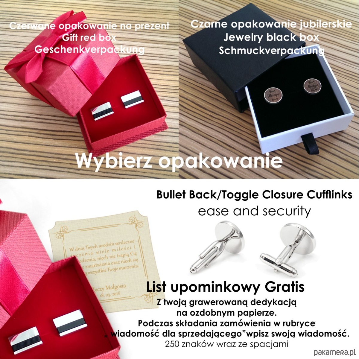 Grawerowane spinki do mankietów z Twoim grawerem na srebrze, wykonane ze srebra próby 925. Spinki do mankietów z grawerem to oryginalny pomysł na prezent dla mężczyzny, prezent urodzinowy.