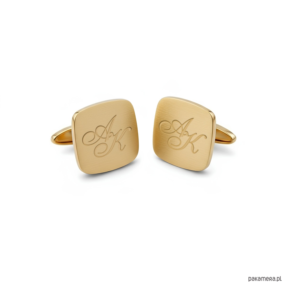 Złote spinki do mankietów z grawerem srebro