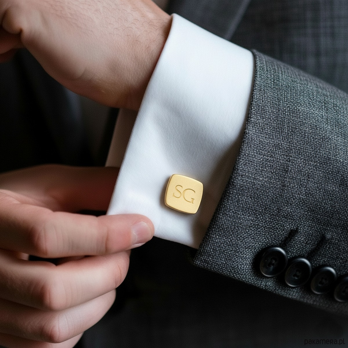 Grawerowane spinki do mankietów z Twoim grawerem na złocie, wykonane ze srebra próby 925 pozłacanego. Spinki do mankietów z grawerem to oryginalny pomysł na prezent dla mężczyzny, prezent urodzinowy.