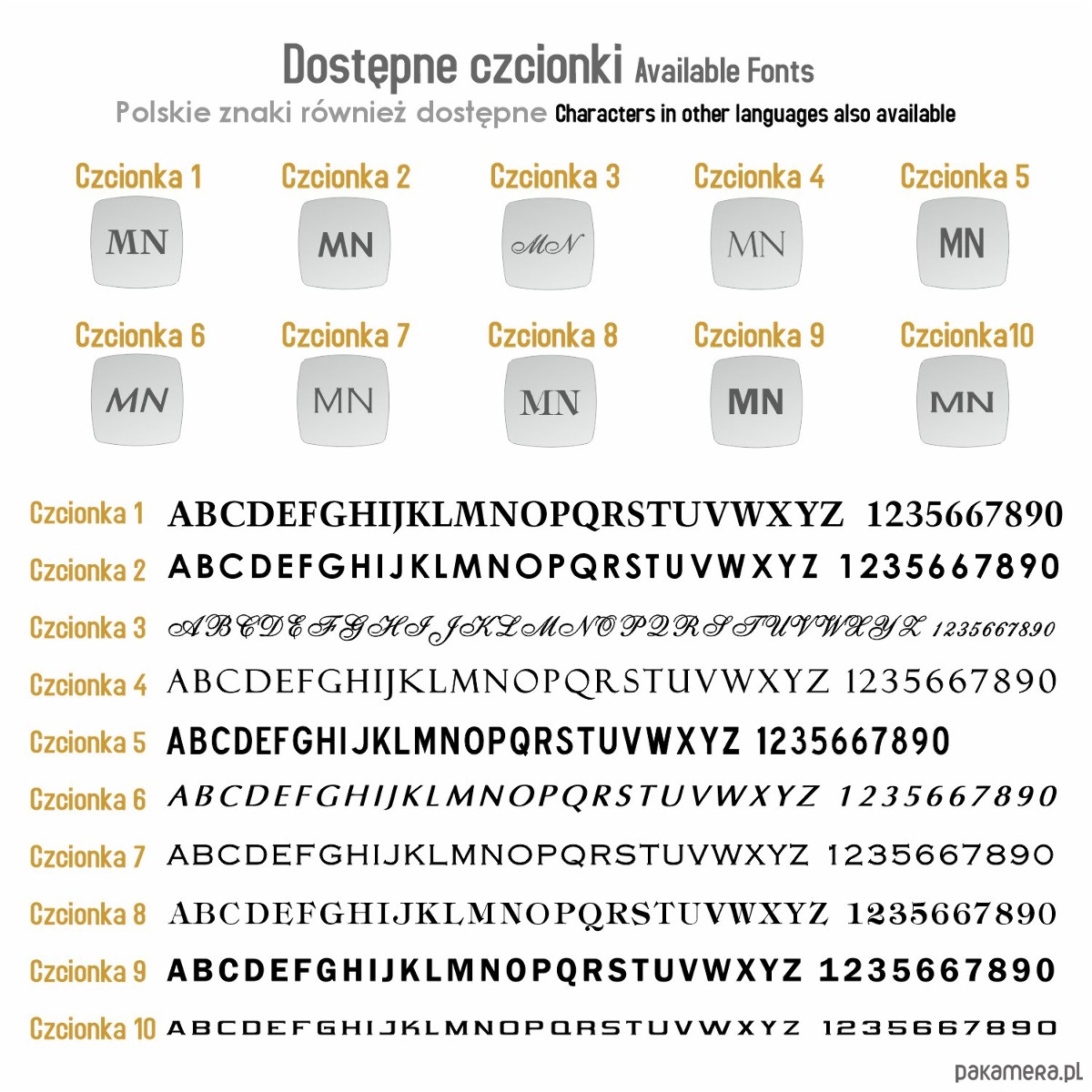W informacji do sprzedającego wpisz numer czcionki oraz inicjały / monogram na Lewej i Prawej spince. Grawer może być inny na L i P spince.