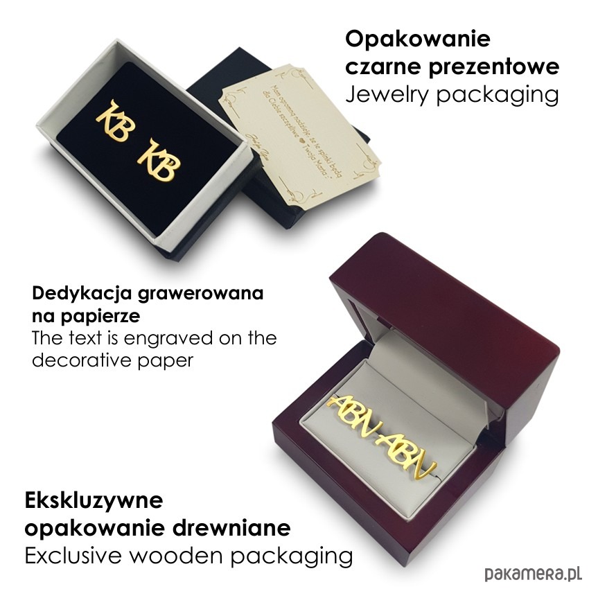 W informacji do sprzedającego wpisz numer czcionki oraz inicjały dla Lewej i Prawej spinki. Inicjały mogą być inny na L i P spince.