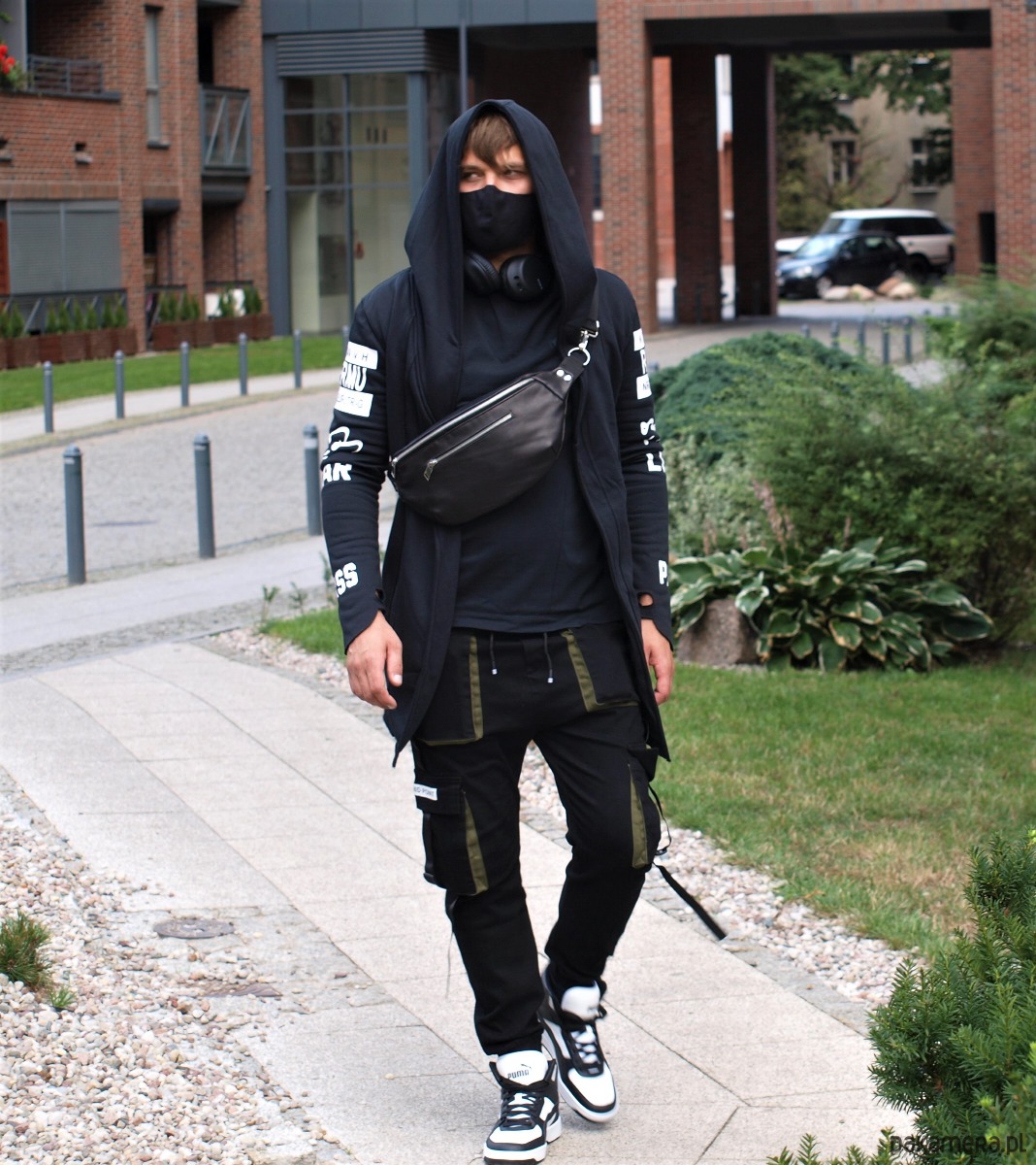 Oryginalna nerka do noszenia przez ramię lub na pas wykonana z naturalnej gładkiej czarnej skóry.