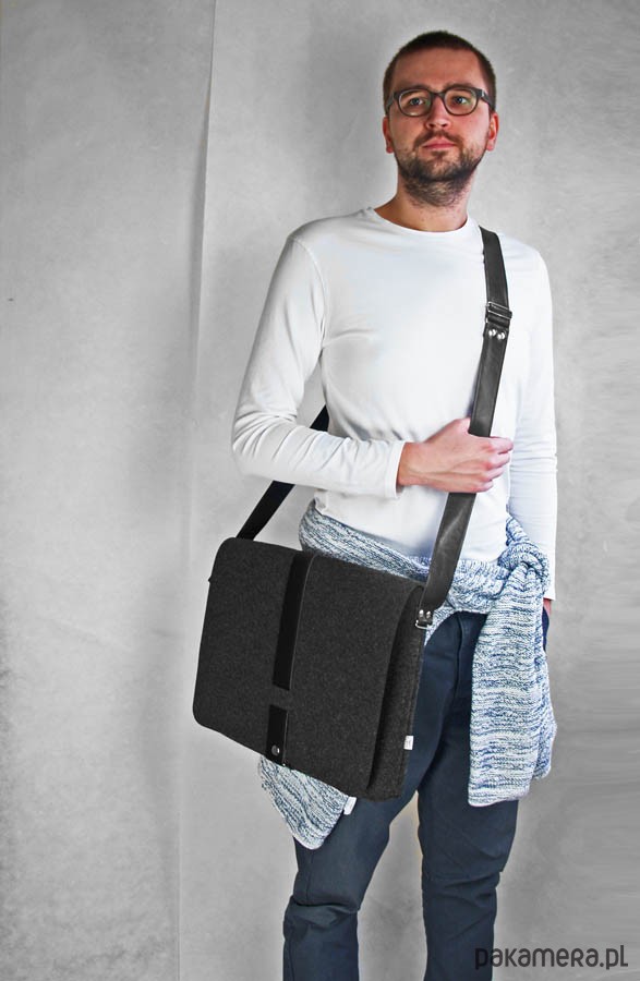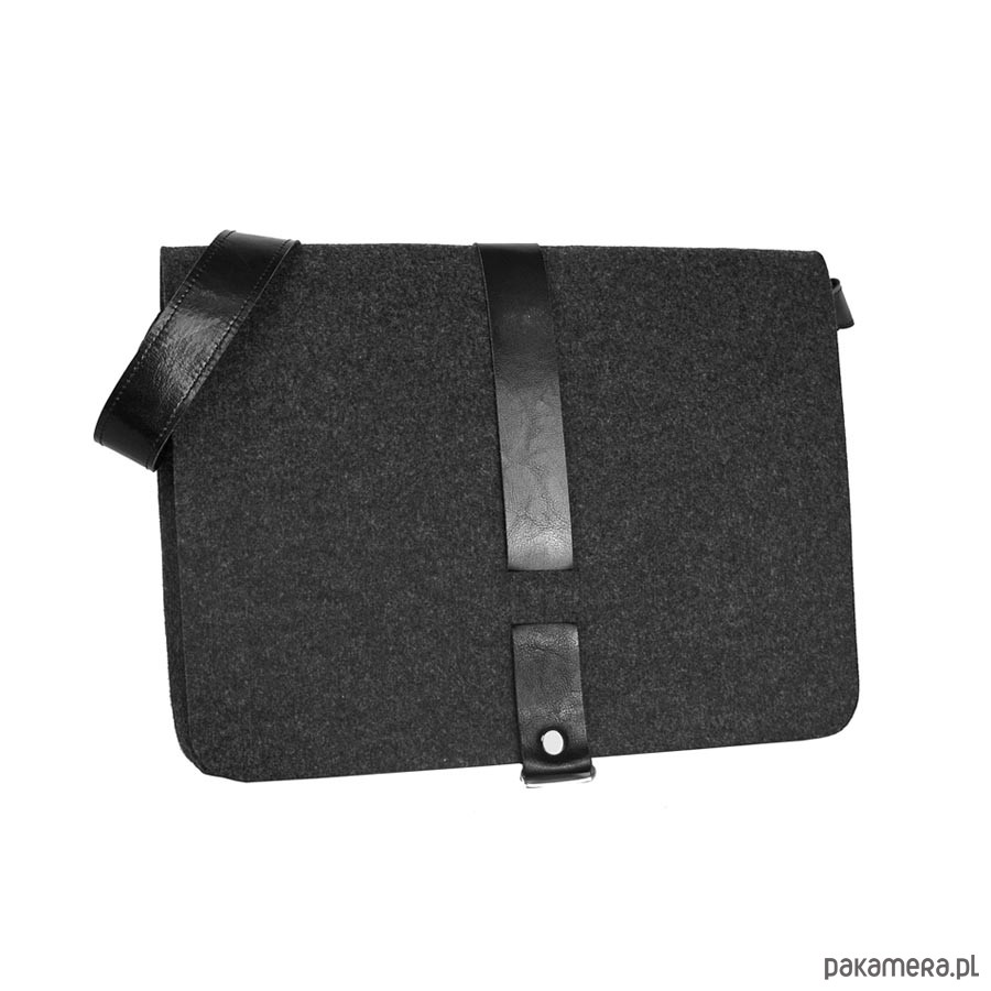 Męska torba filcowa z klapką wykonana ręcznie z grafitowego filcu i czarnej skóry,