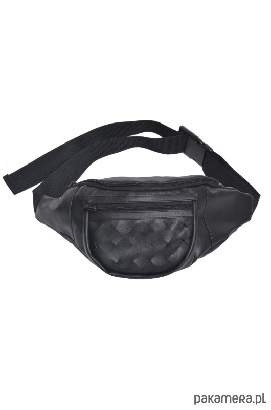 Czarna nerka z czterema kieszeniami – trzy zewnętrzne kieszenie i jedna w środku. Przód posiada geometryczne nacięcia charakterystyczne dla linii DZKY. by maciek sieradzky. Środek wyłożony bawełnianą podszewką. Model dla Niej oraz dla Niego.