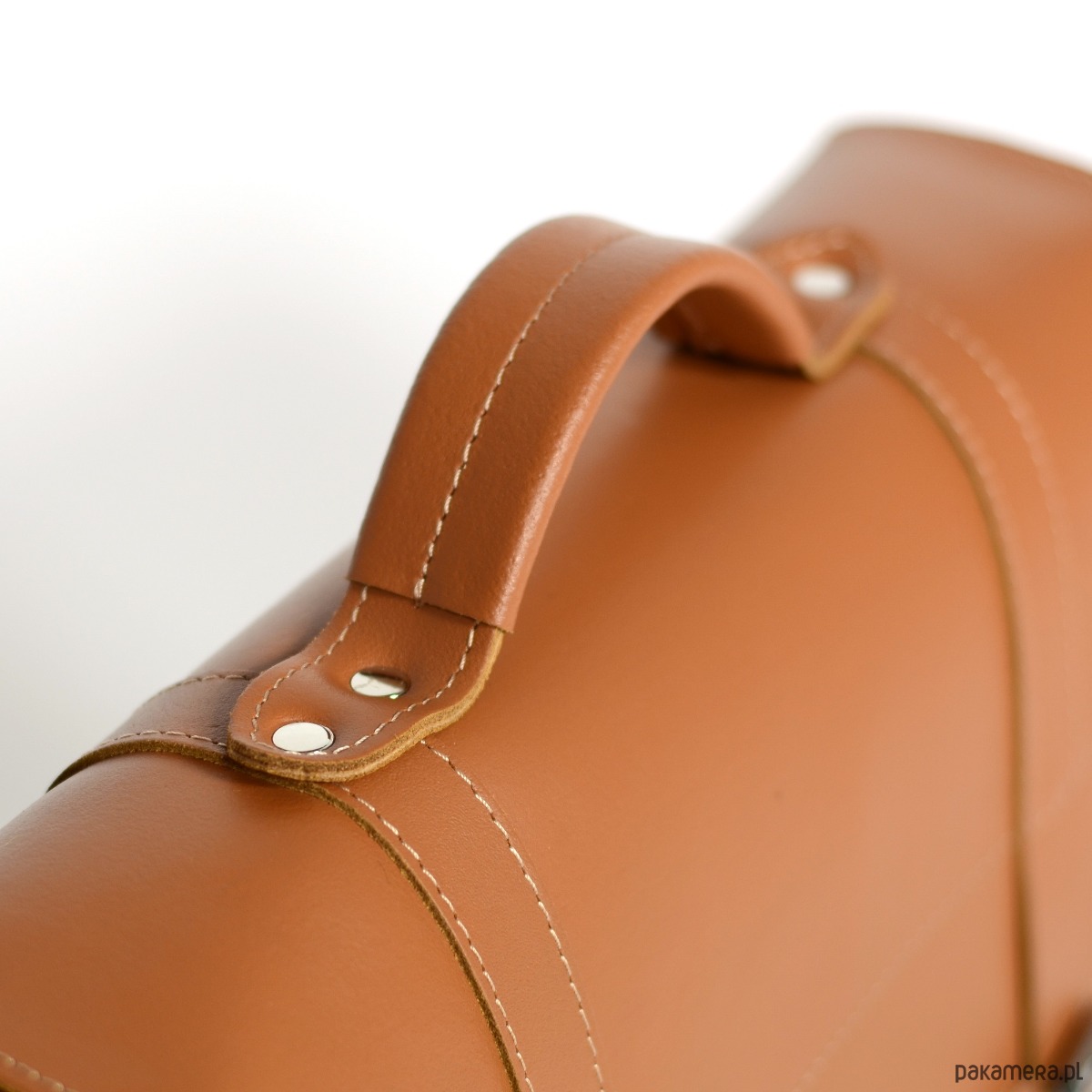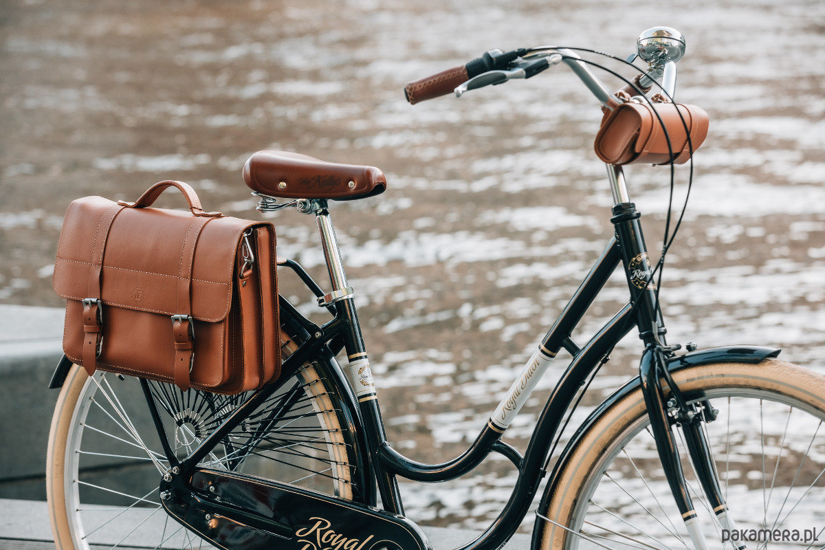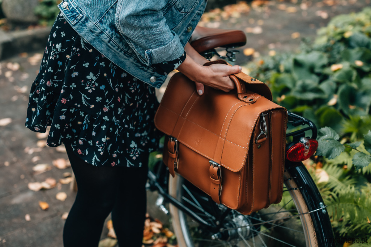 Skórzana torba rowerowa wykonana ręcznie ze skóry hydrofobowej ze specjalnym systemem zapinania umożliwiającym wygodne i szybkie przymocowanie torby do bagażnika rowerowego.