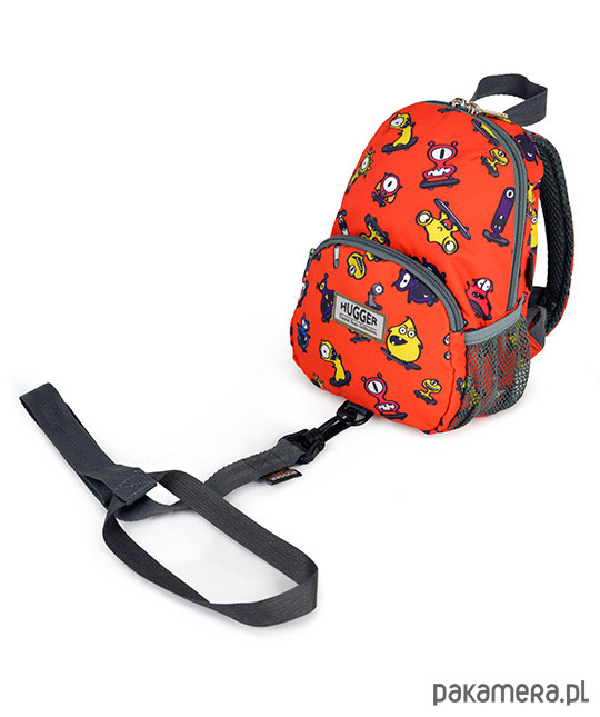 Wysokiej jakości markowy plecak brytyjskiej marki Hugger. Plecak jest ultra lekki, pojemny, wytrzymały, wesoły, kolorowy i oryginalny, posiada dużą główną komorę z wewnętrzną elastyczną kieszenią. Z przodu posiada mniejszą podręczną kieszeń zapinaną na zamek oraz elastyczne boczne kieszenie siatkowe na przekąski, chusteczki, wodę, soczek. Posiada również regulowane szelki ze wzmocnionymi szwami. Jest wyposażony w zamek błyskawiczny YKK. Do plecaczka dołączona jest odpinana smycz, dzięki której Twoje dziecko jest bezpieczne i zawsze blisko Ciebie, zwłaszcza na chodniku, ulicy, w zatłoczonych miejscach, na zakupach, etc. Pasy ramienne z klamrą piersiową tworzą szelki bezpieczeństwa. Plecak ma też górny uchwyt. Jest idealny na wycieczki, spacery, wakacje, zakupy. Nie zawiera toksyn, jest przyjazny dziecku i środowisku, spełnia Europejskie standardy bezpieczeństwa.