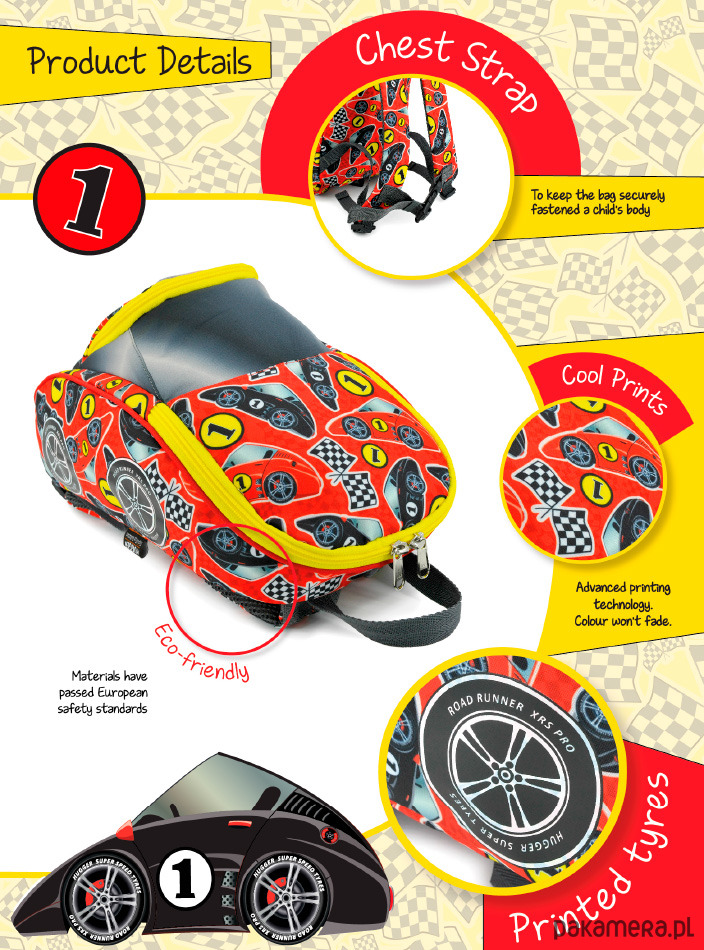 Poznaj serię Racer, szybkie plecaki w kształcie aut z kołami po bokach dla małych fanów samochodów. Zabawny projekt, który pozwala dziecku odkrywać wyobraźnię został specjalnie stworzony przez brytyjskich artystów.