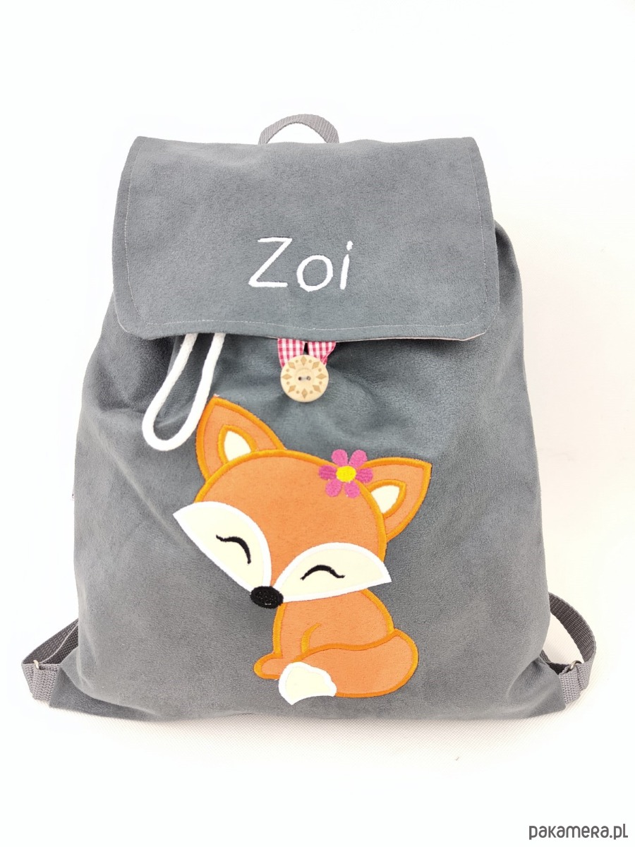 Plecak z liskiem, worek z liskiem i imieniem