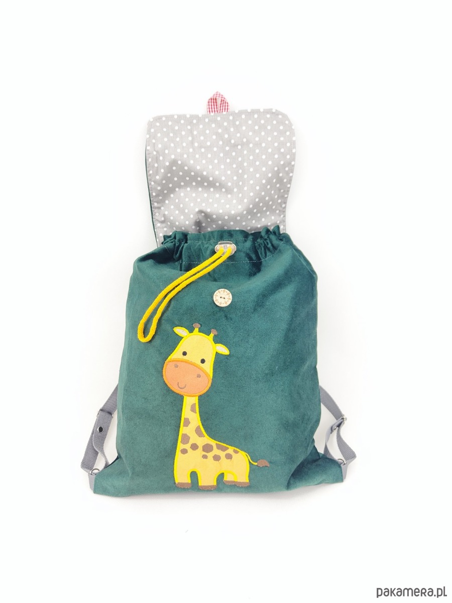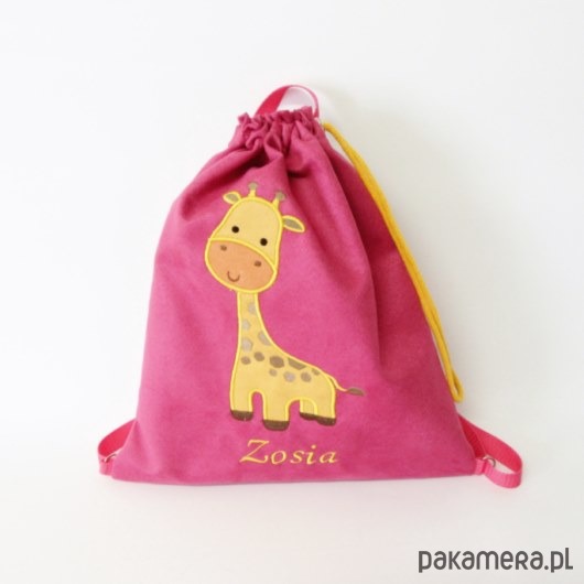 Plecak z żyrafą, worek z żyrafą i imieniem