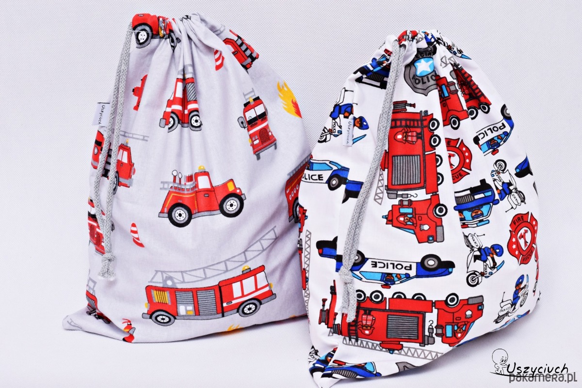 Worek na buty, kapcie, strój gimnastyczny, zabawki, ubrania, bieliznę uszyty z bawełny 100% straż pożarna