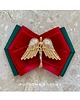 Broszka w kolorach zieleni oraz czerwieni z dodatkiem wstążki aksamitnej. .