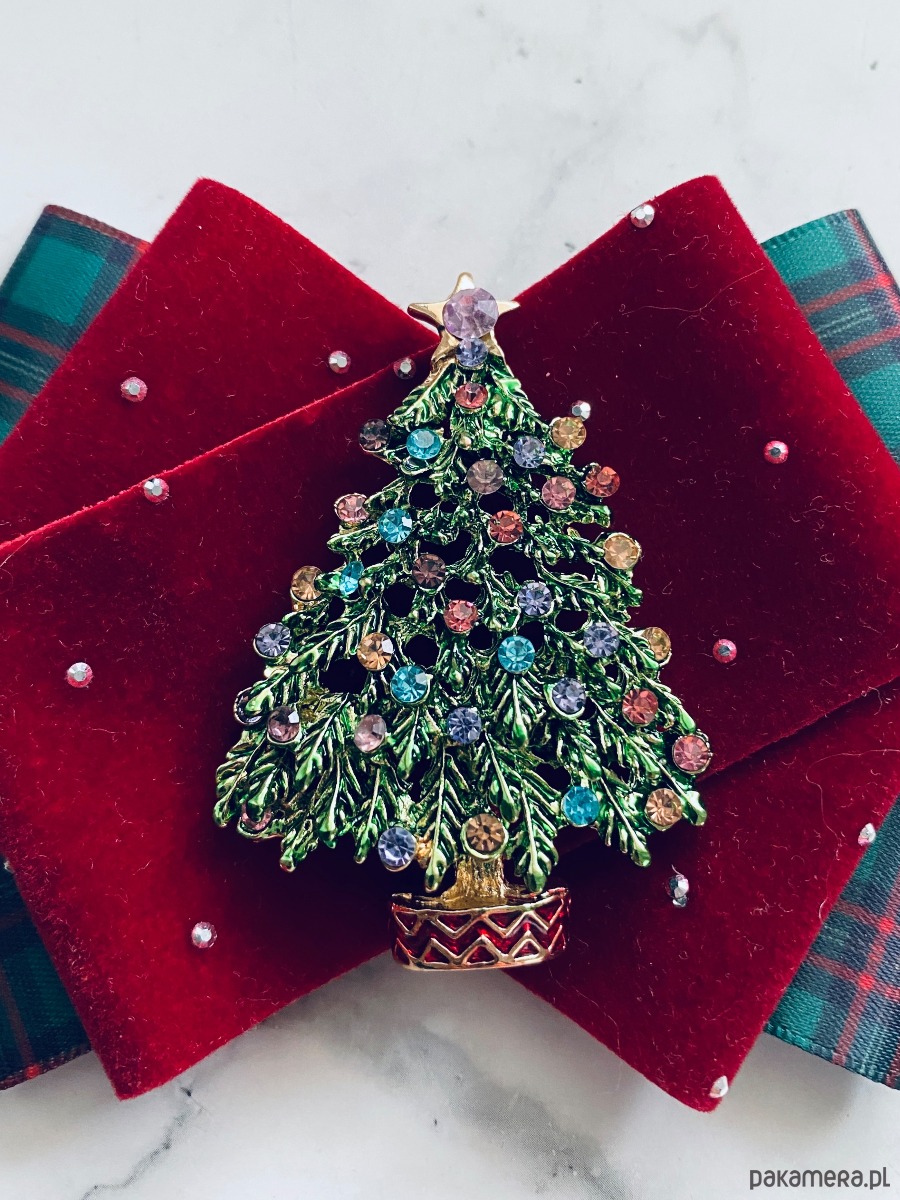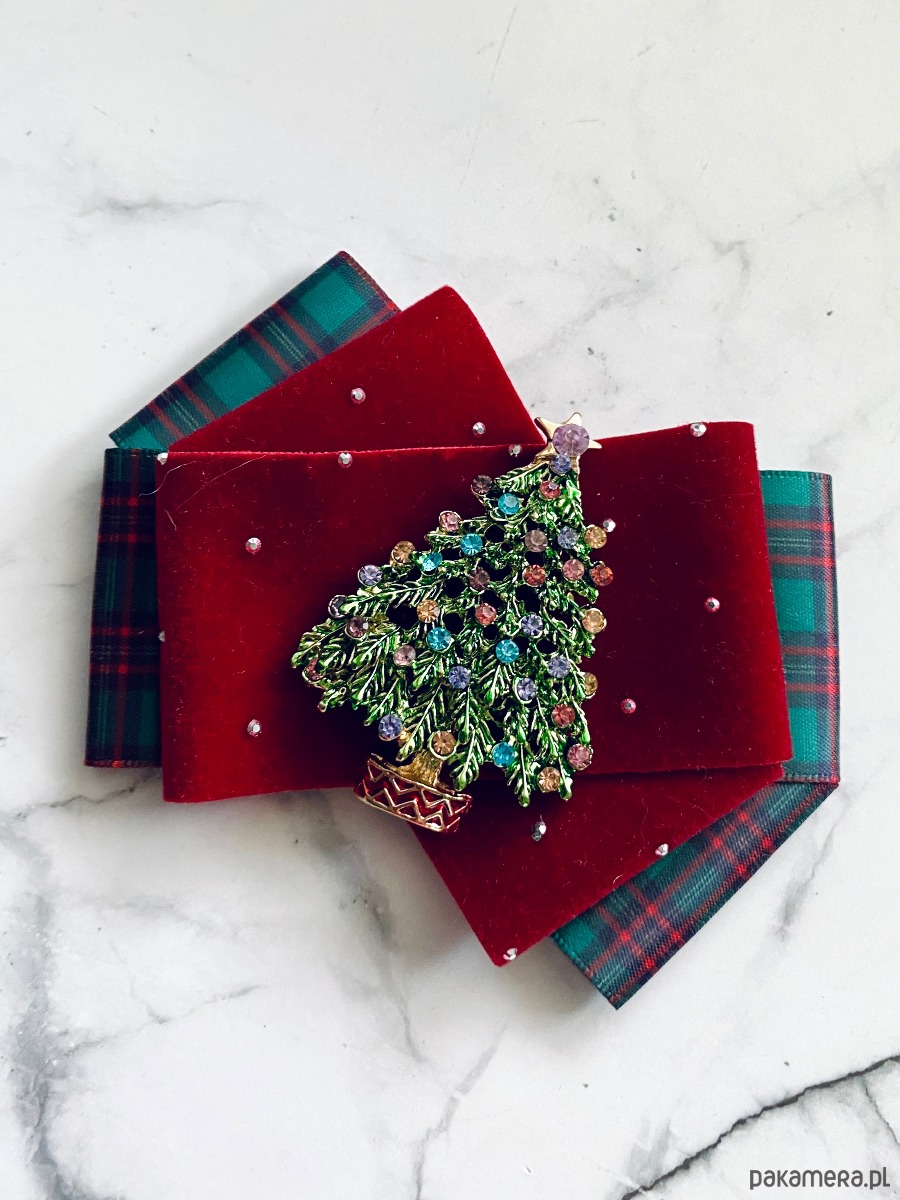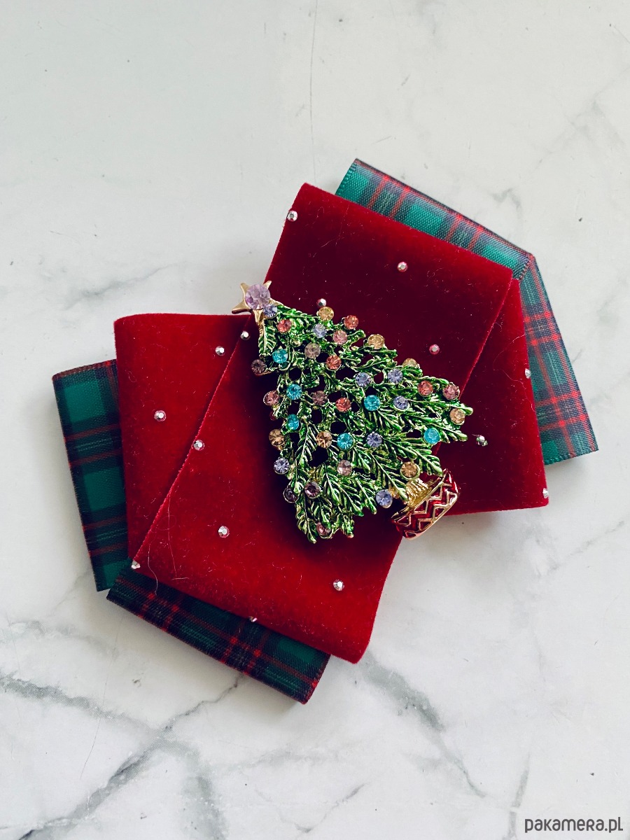Aksamitna Brosza z Choinką Święta Mikołajki