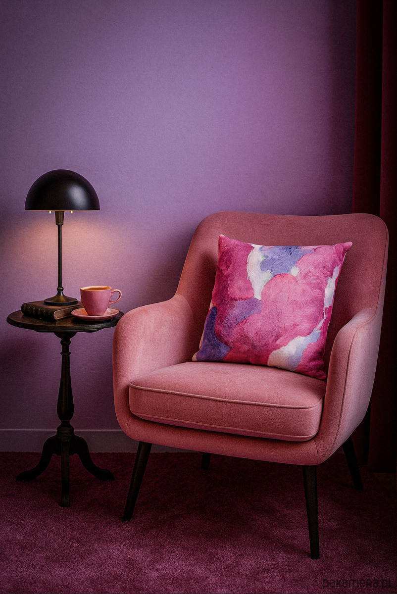 Aksamitna PODUSZKA dekoracyjna, autorski print CHMURY różowe niebo