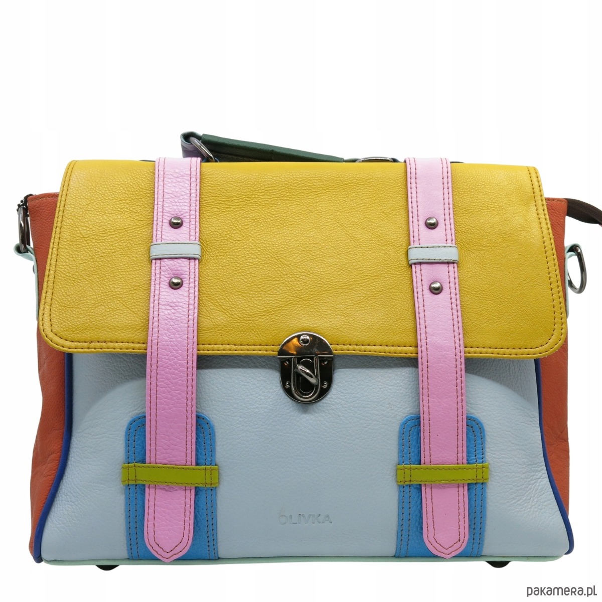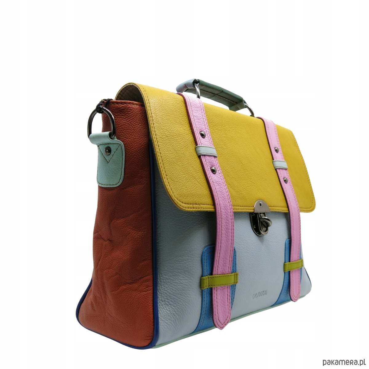 Aktówka skórzana skóra naturalna pojemna wygodna rączka, pasek OLIVKA