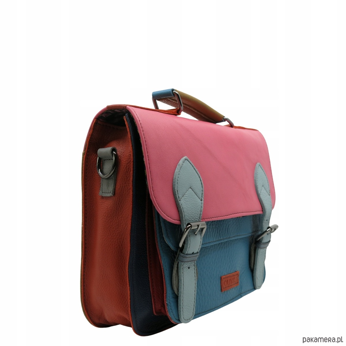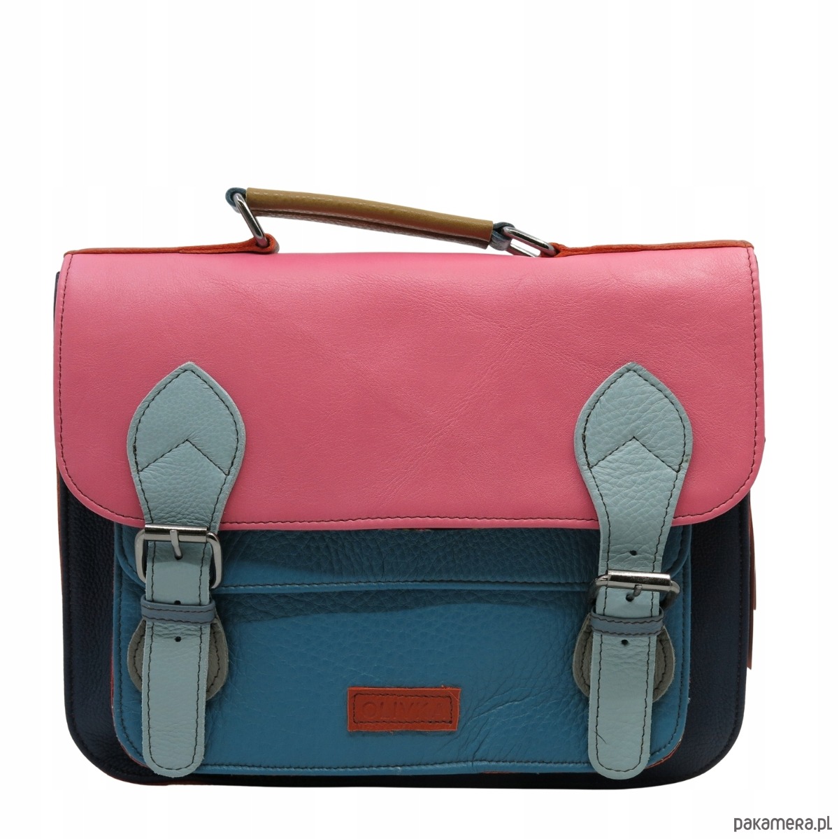 Aktówka skórzana torba damska teczka regulowany pasek wygodna rączka OLIVKA