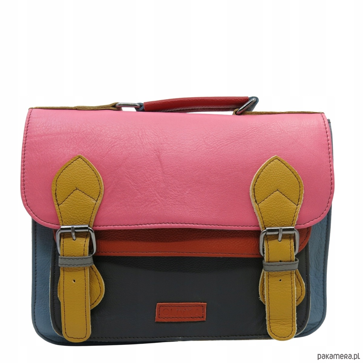 Aktówka skórzana torba damska teczka regulowany pasek wygodna rączka OLIVKA