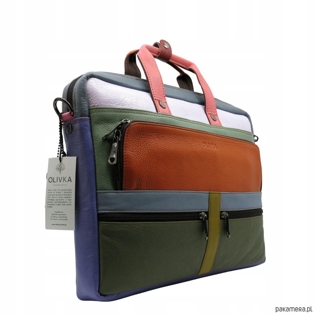 OLIVKA to marka, która tworzy unikalne, ręcznie wykonane torebki i akcesoria, wykorzystując skrawki skór pozostałe po produkcji innych wyrobów skórzanych. Produkty OLIVKA to połączenie rzemiosła i zaangażowania w ochronę środowiska. Każdy produkt tej marki jest jedyny w swoim rodzaju — nie jest to jedynie hasło reklamowe, lecz zasada, która stanowi fundament działalności OLIVKI. Dzięki wykorzystywaniu skrawków skór, żadna z oferowanych torebek nie jest identyczna, co sprawia, że każda stanowi niepowtarzalny egzemplarz, wyróżniający się oryginalnym kształtem, kolorem i historią.