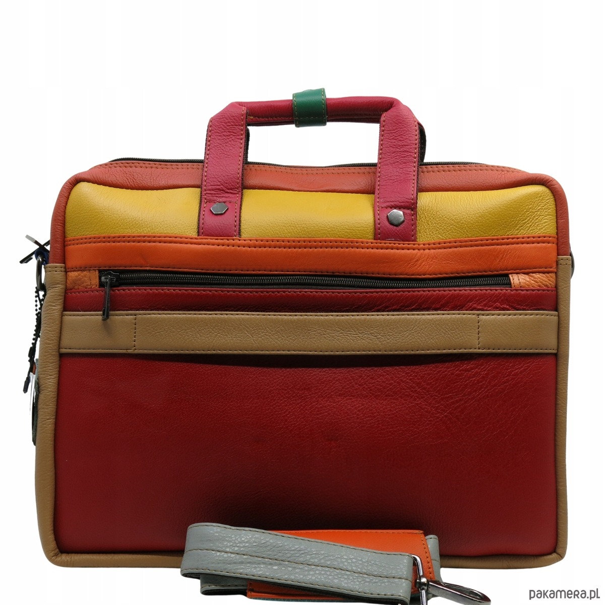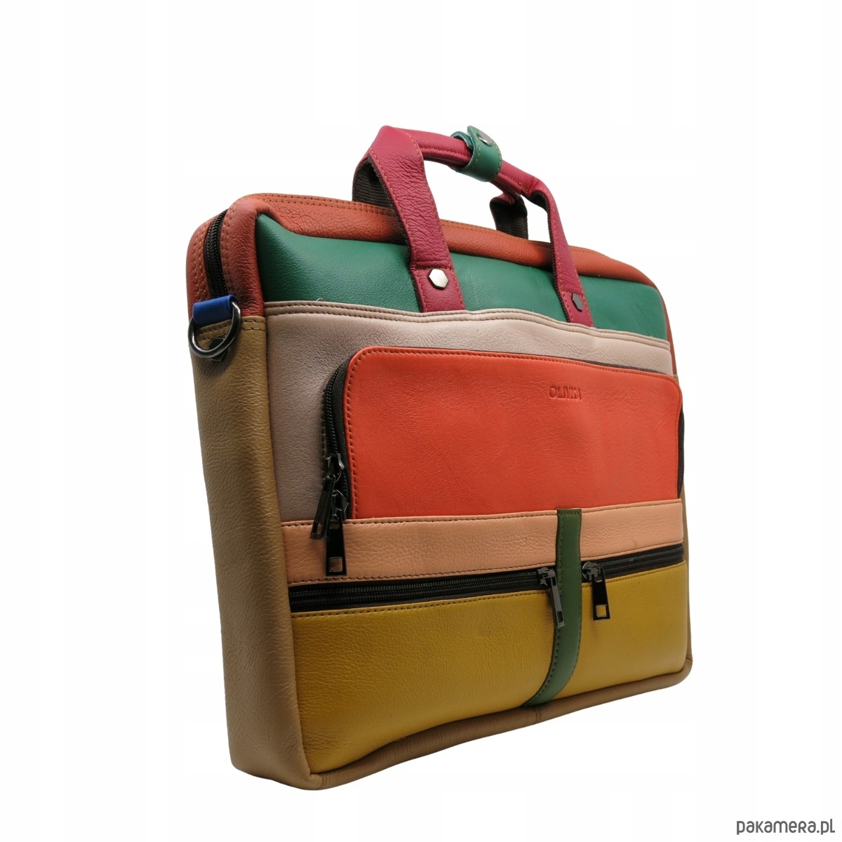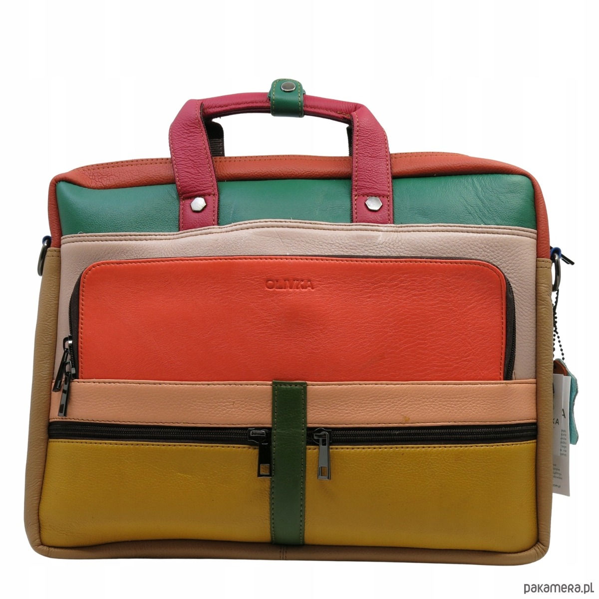 Aktówka torba na laptopa skórzana rączki regulowany pasek kieszenie OLIVKA
