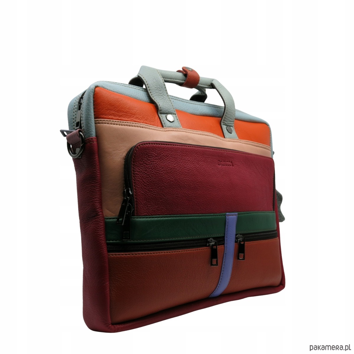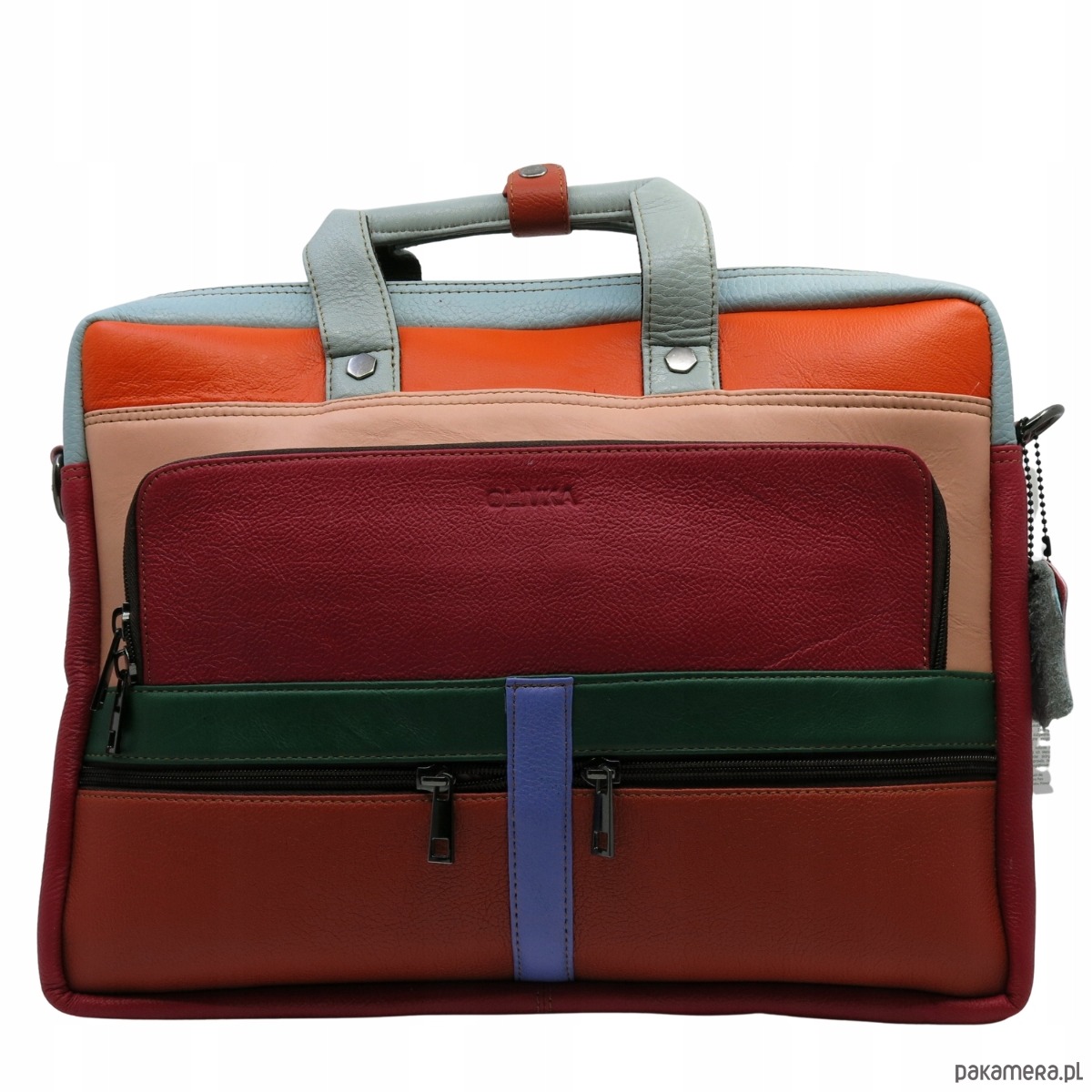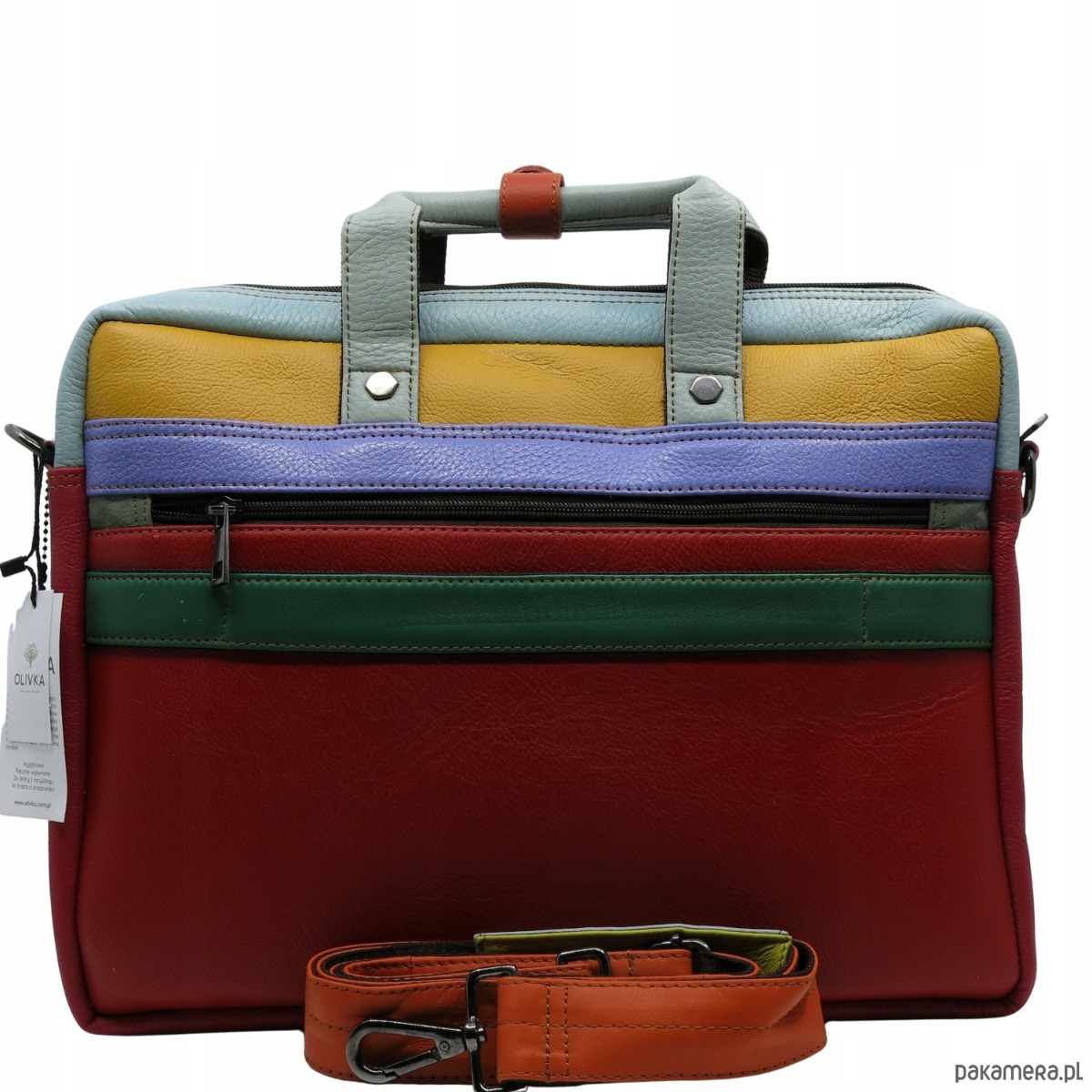 Aktówka torba na laptopa skórzana rączki regulowany pasek kieszenie OLIVKA