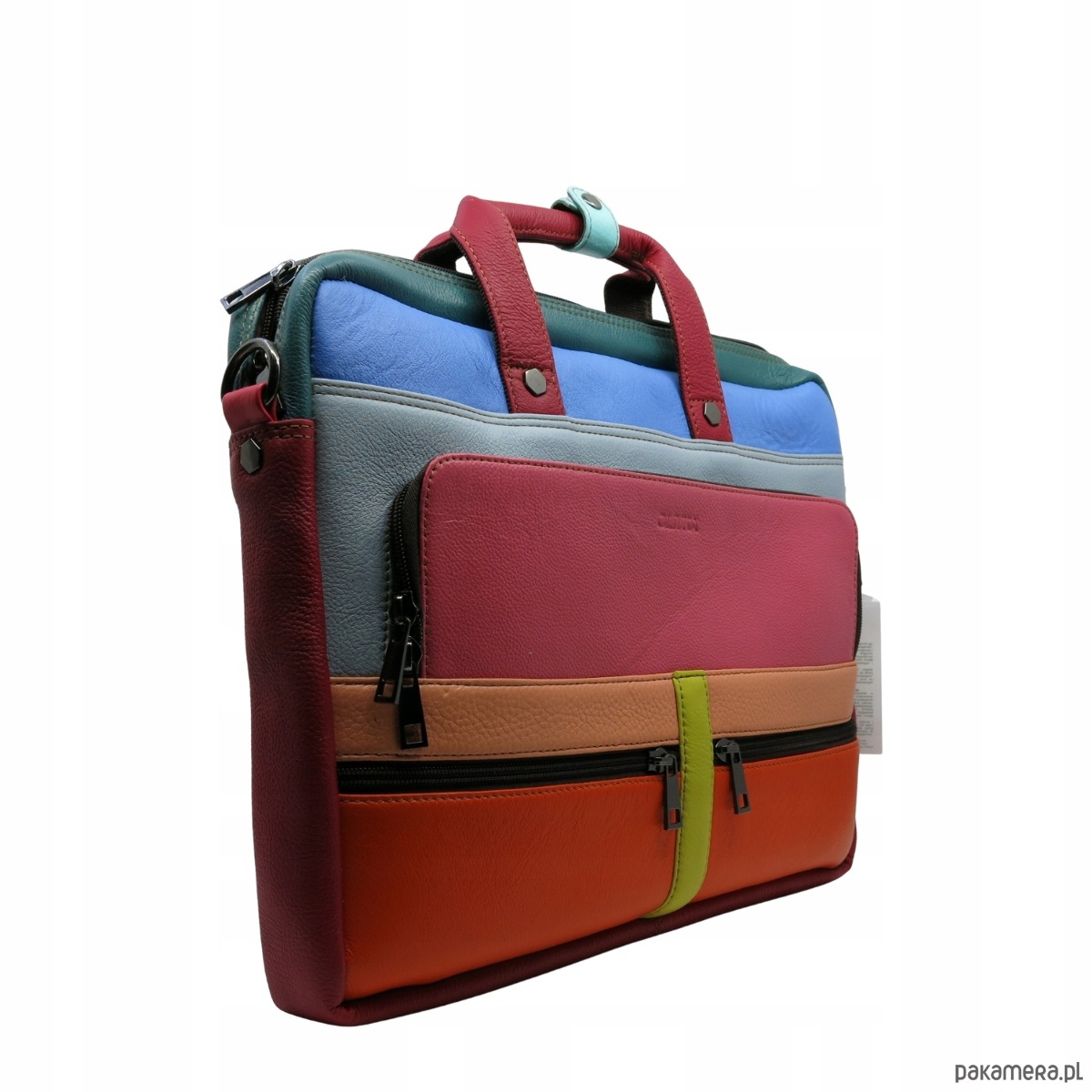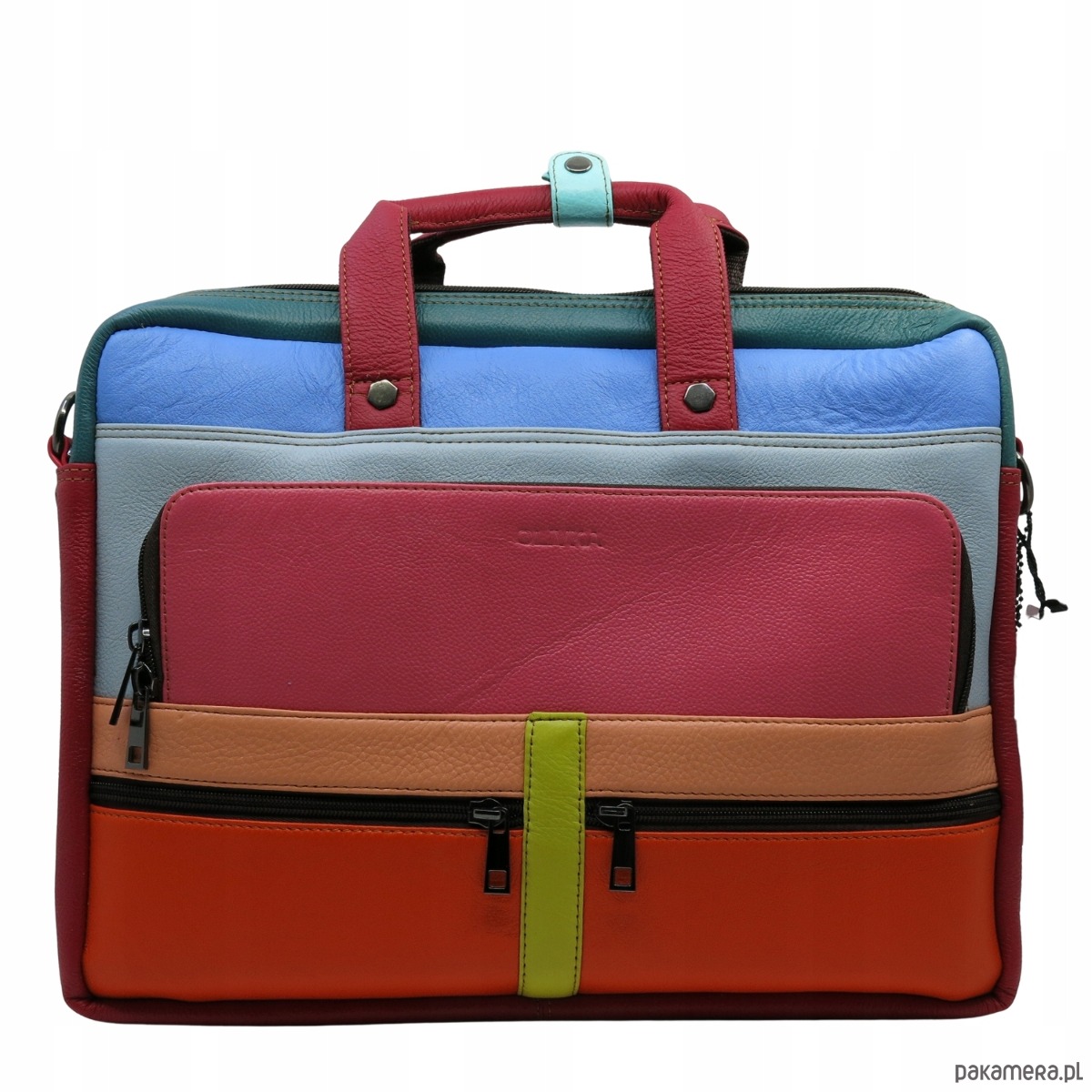 Aktówka torba na laptopa skórzana rączki regulowany pasek kieszenie OLIVKA