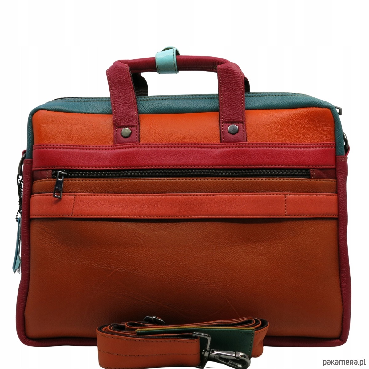 Nasza aktówka to idealne połączenie funkcjonalności i stylu. Specjalnie wyściełana komora, która zapewnia dodatkową ochronę laptopa, kieszenie umożliwiające wygodne przechowywanie niezbędnych rzeczy, skórzane rączki oraz długi, regulowany pasek w komplecie sprawiają, że torba spełni oczekiwania najbardziej wymagających. Z tyłu znajduje się dodatkowo praktyczny pasek, który pozwala na wsunięcie torby na uchwyt bagażu, dzięki czemu jest idealnym wyborem dla osób podróżujących.