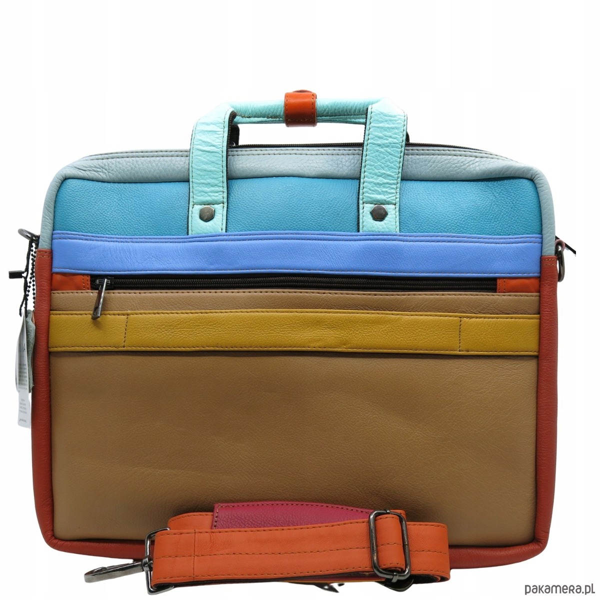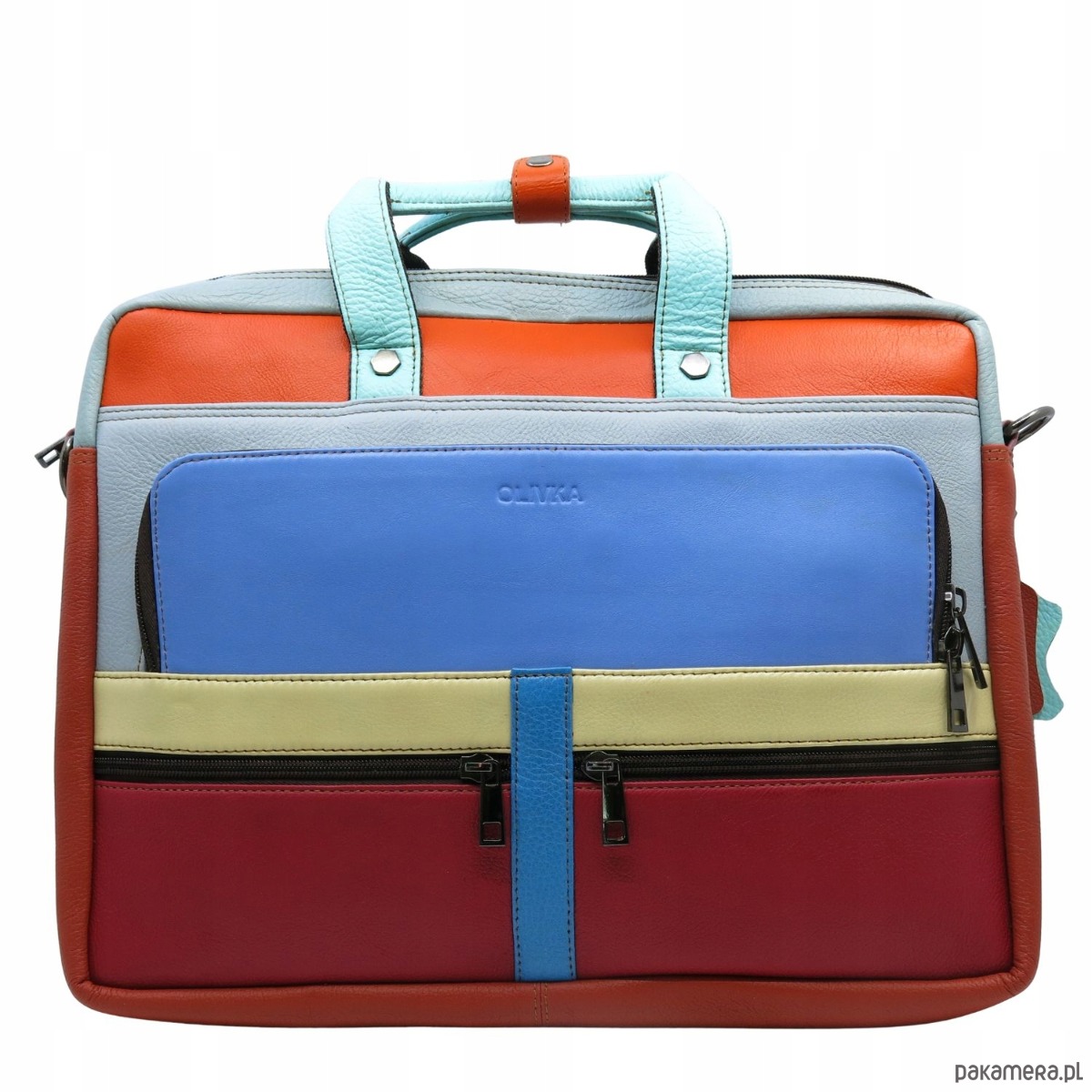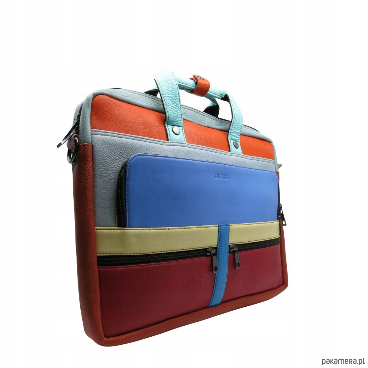 Aktówka torba na laptopa skórzana rączki regulowany pasek kieszenie OLIVKA